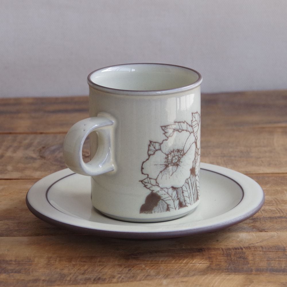 HORNSEA Cornrose ホーンジー コーンローズ コーヒーカップ ソーサー アンティーク レトロ ひなげし花柄 イギリス製 ヴィンテージ食器 グレー #240728-7