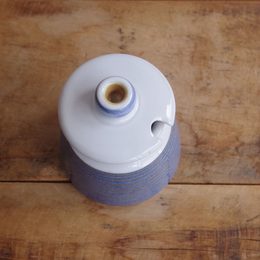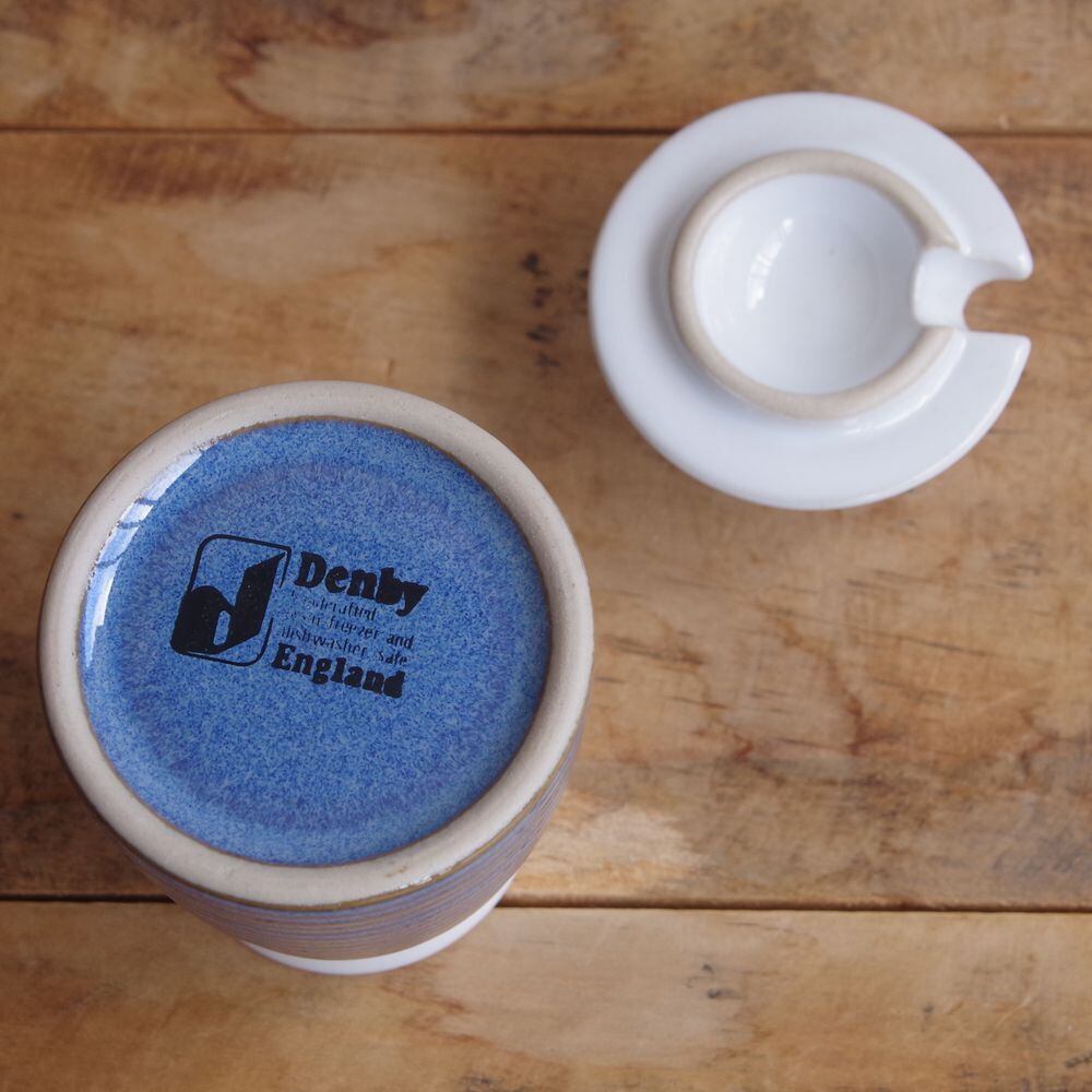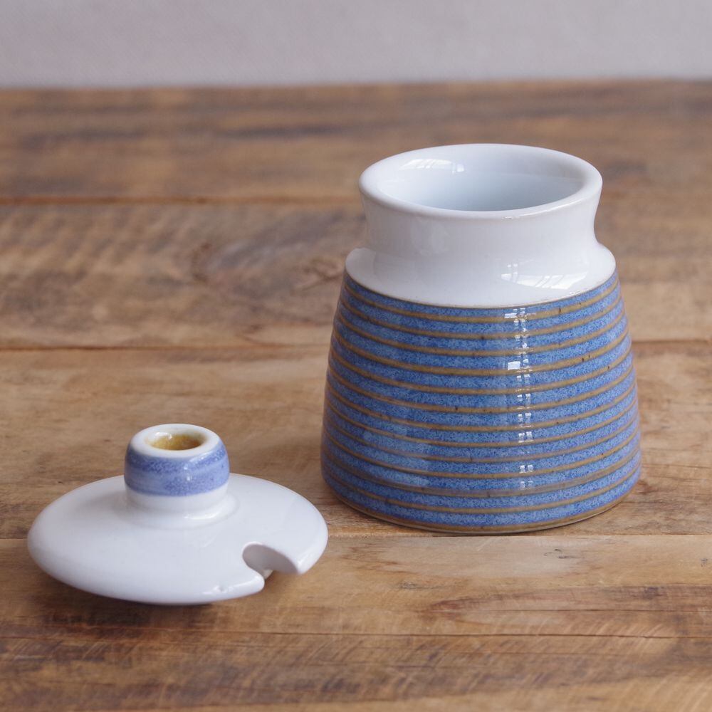 DENBY Chatsworth デンビー チャッツワース マスタードポット 壺 からし入れ 調味料入れ スパイスケース イギリス ヴィンテージ 食器 陶器 ブルー ホワイト バイカラー ツートン #240901-3