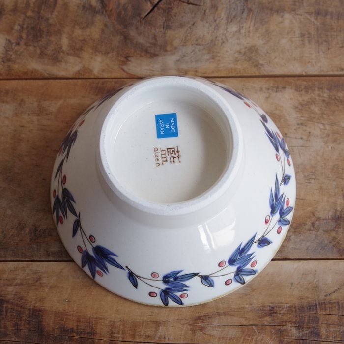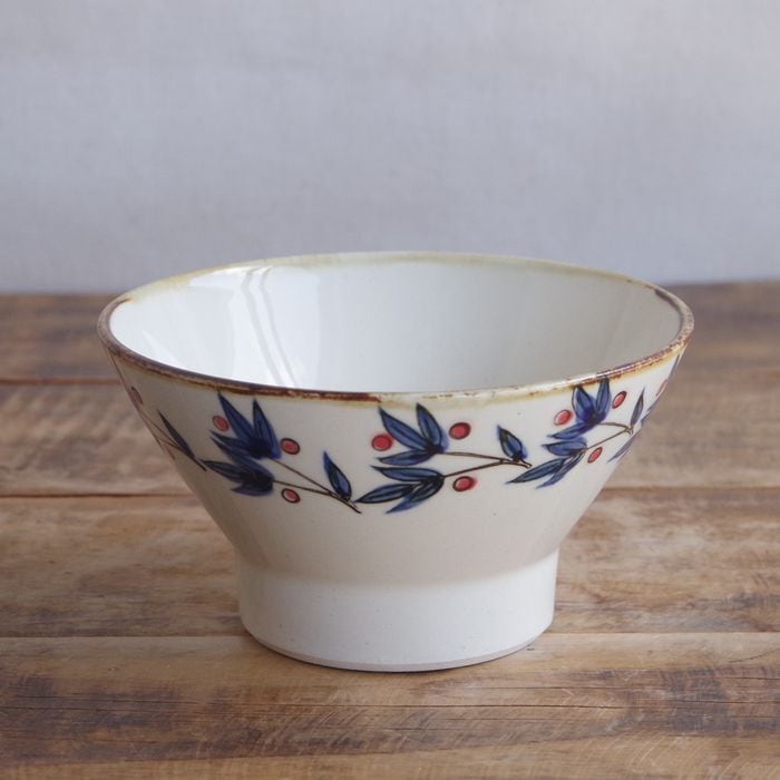 アイボリーの地に、ネイビーの葉と赤い小さな実の絵柄が入った