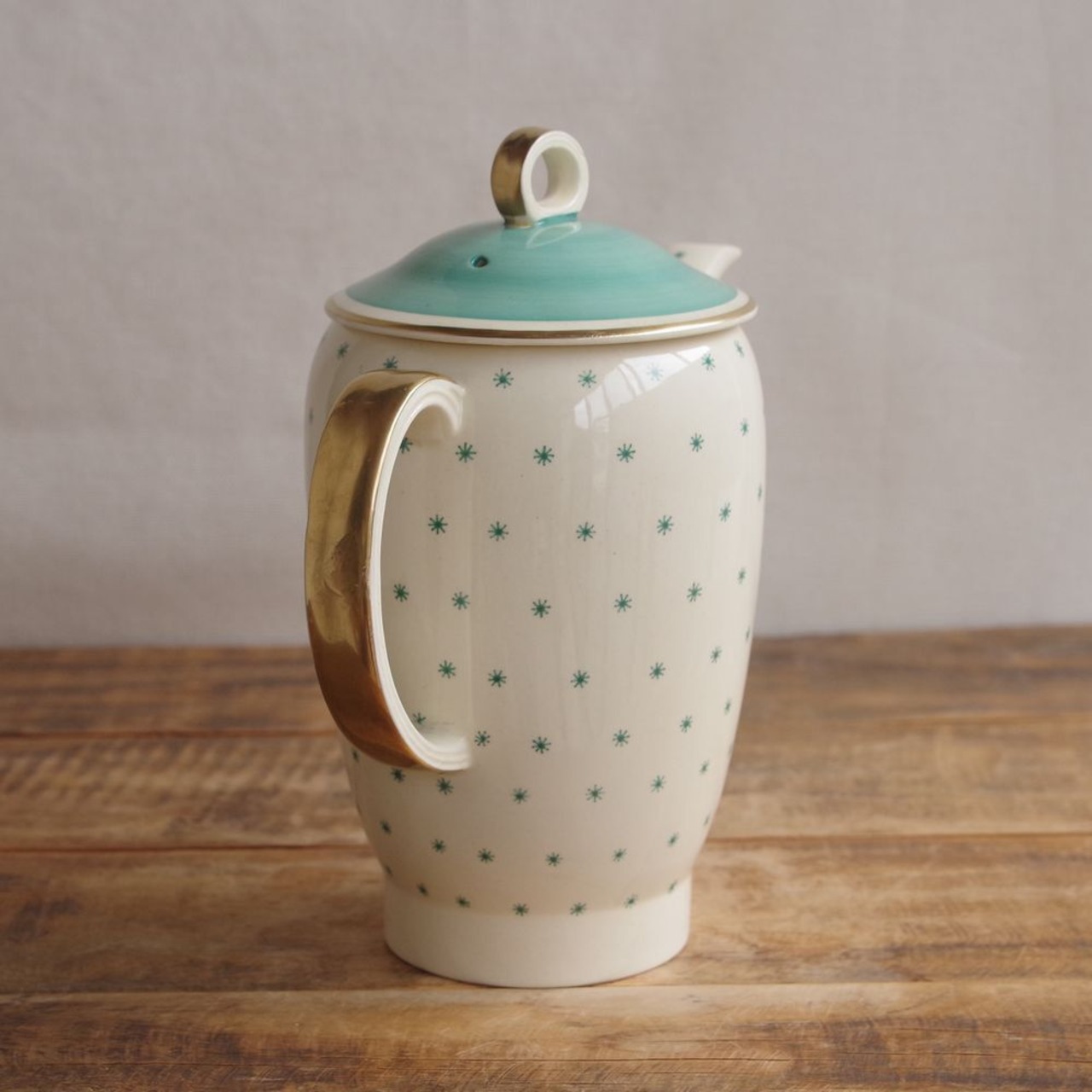SOLD OUT 少々難あり スージークーパー スター柄 コーヒーポット Susie Cooper Star #240921 アンティーク ヴィンテージ 食器 陶器 レトロ 星 グリーン ゴールド