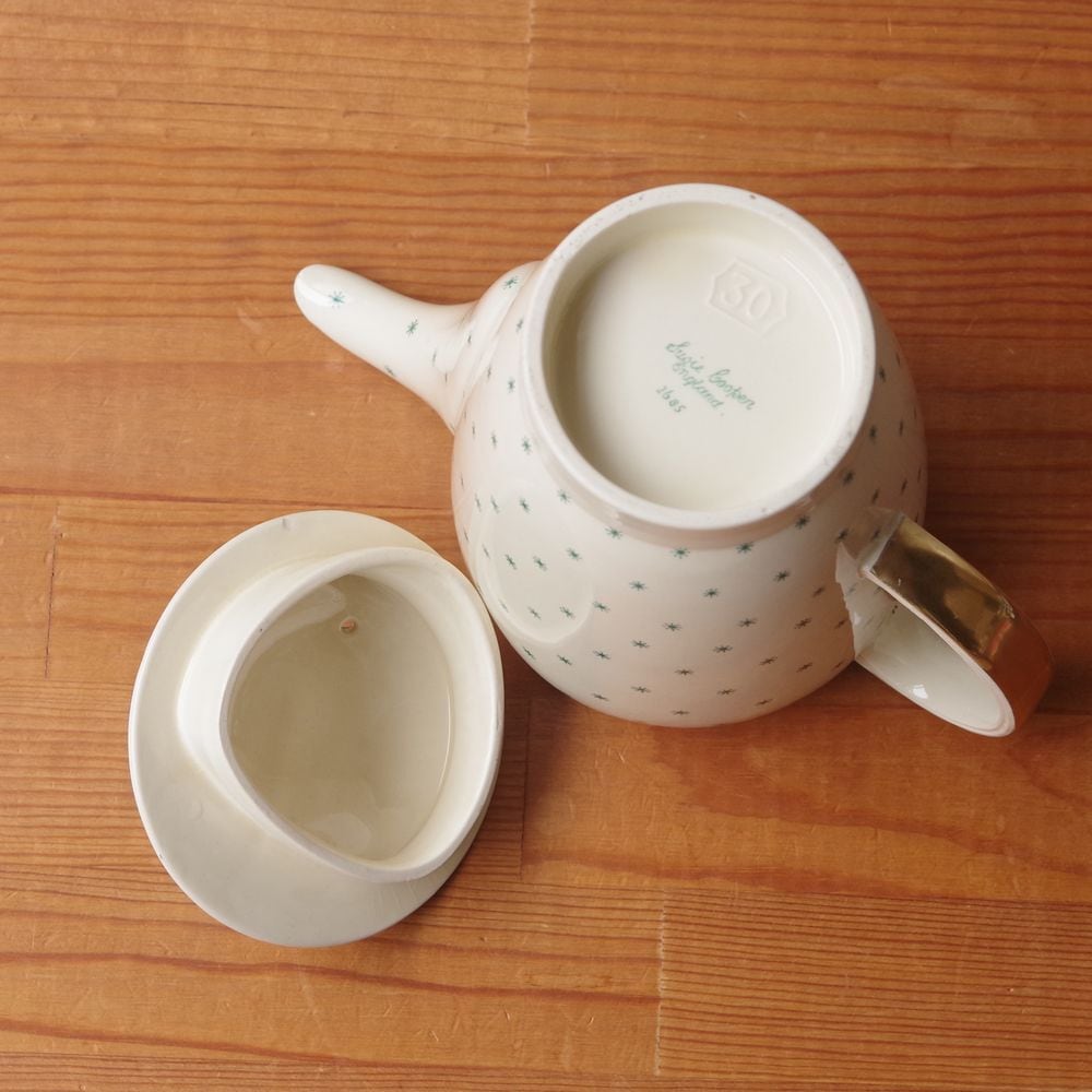 少々難あり スージークーパー スター柄 コーヒーポット Susie Cooper Star #240921 アンティーク ヴィンテージ 食器 陶器 レトロ 星 グリーン ゴールド