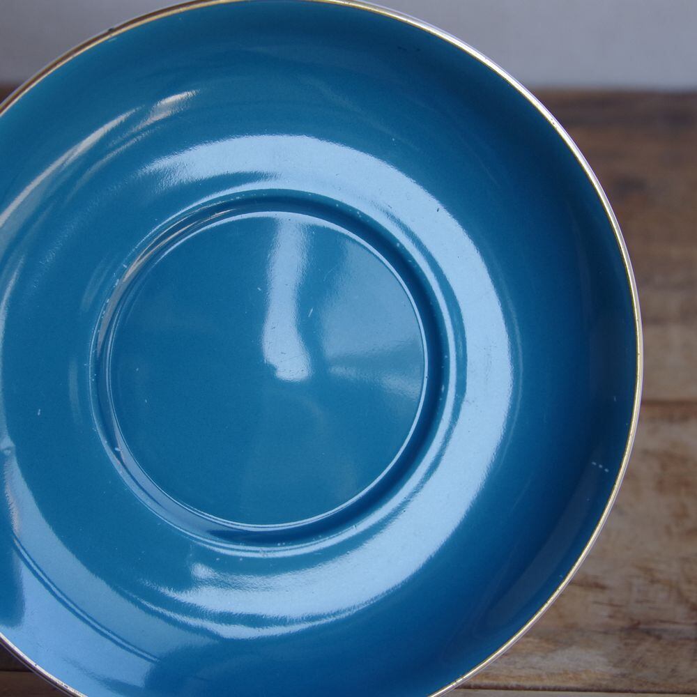 カップの内側やソーサーは、鮮やかなターコイズブルーに塗られています。