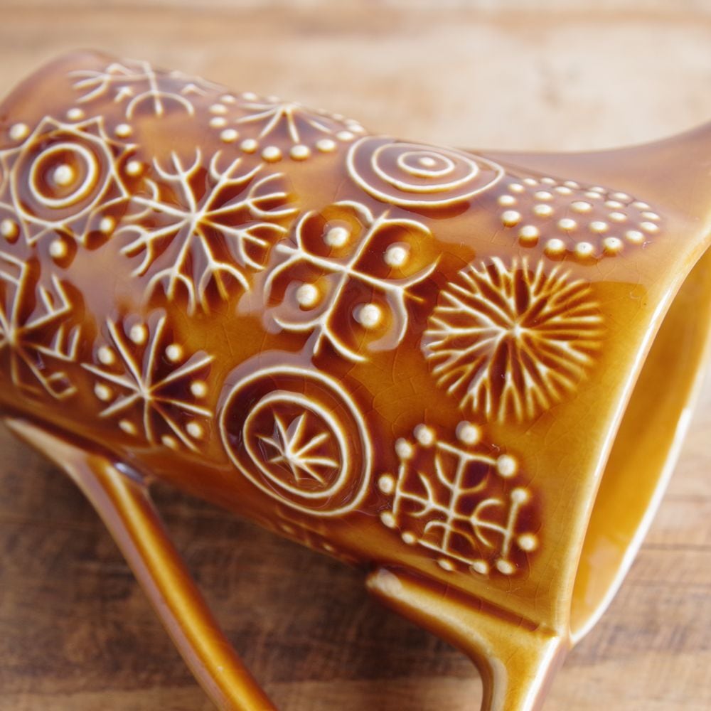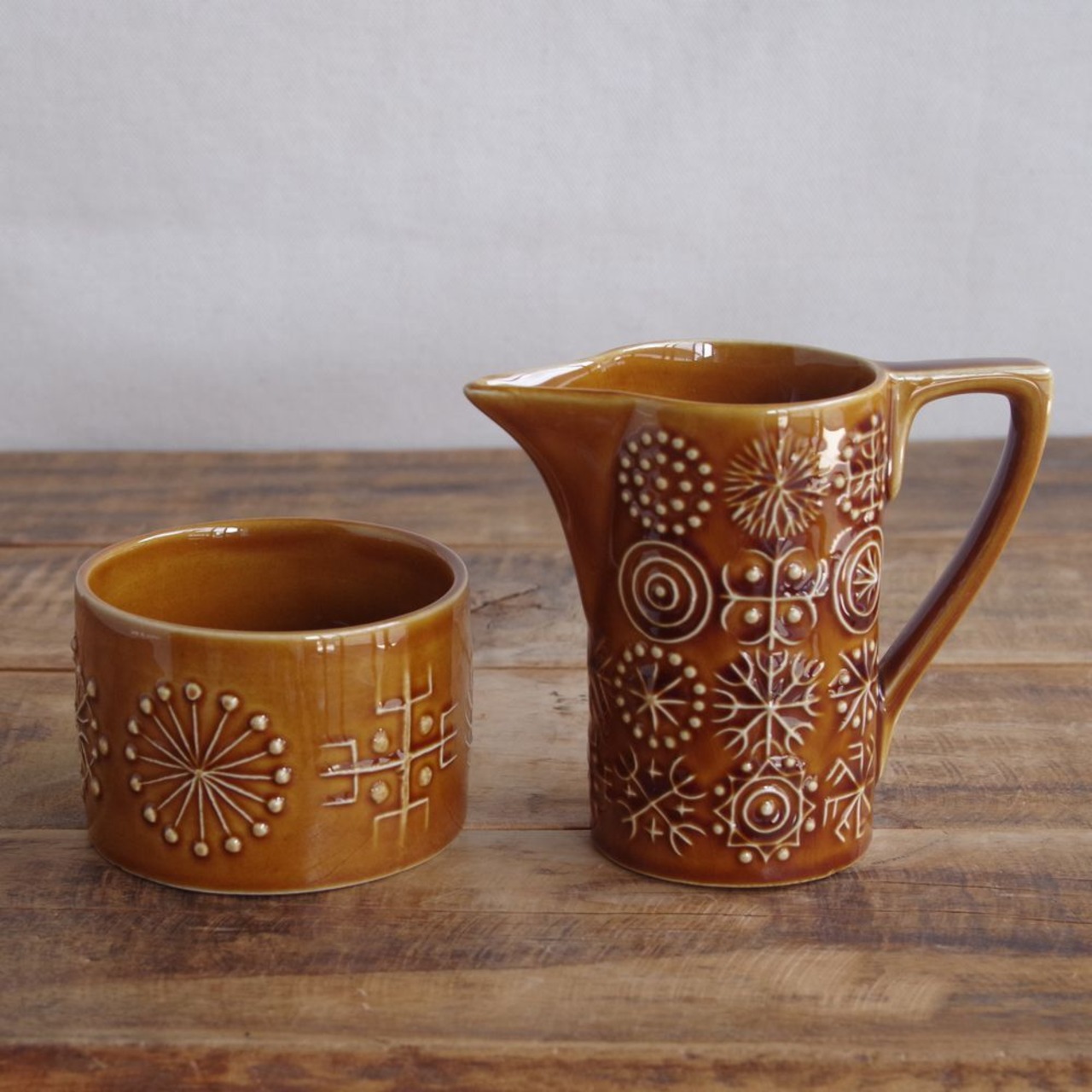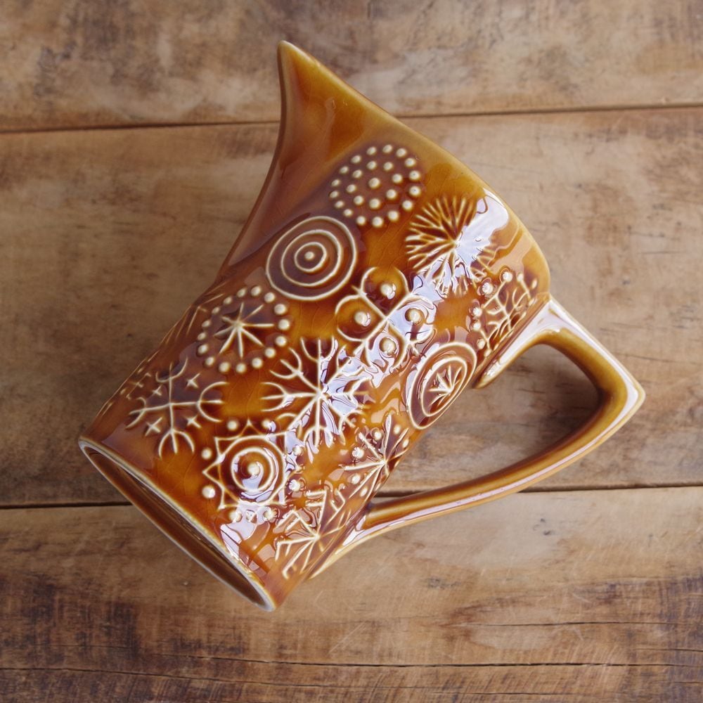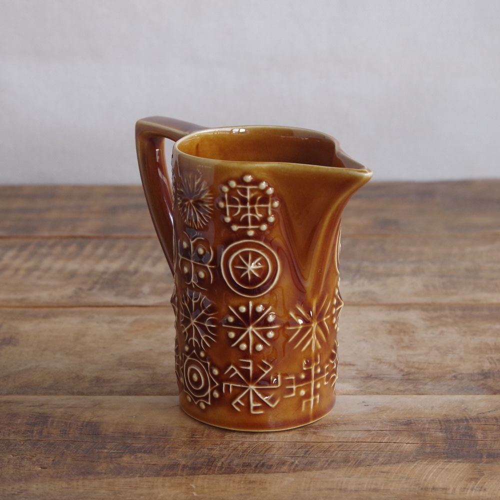 ポートメイリオン トーテム Portmeirion Totem 飴色 クリーマー ミルク入れ ピッチャー #240927 イギリス製 ヴィンテージ 食器 陶器 ブラウン レリーフ ポートメリオン レトロ モダン