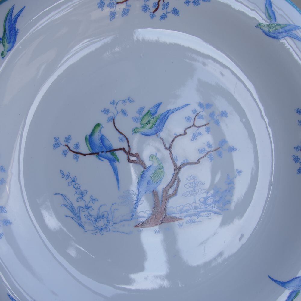 グローブナー ブルー 鳥 盛り皿 持ち手付き プレート 23cm Grosvenor #240927 イギリス ヴィンテージ アンティーク 食器 陶器 レトロ 雑貨 Ye Olde English Jackson&Gosling