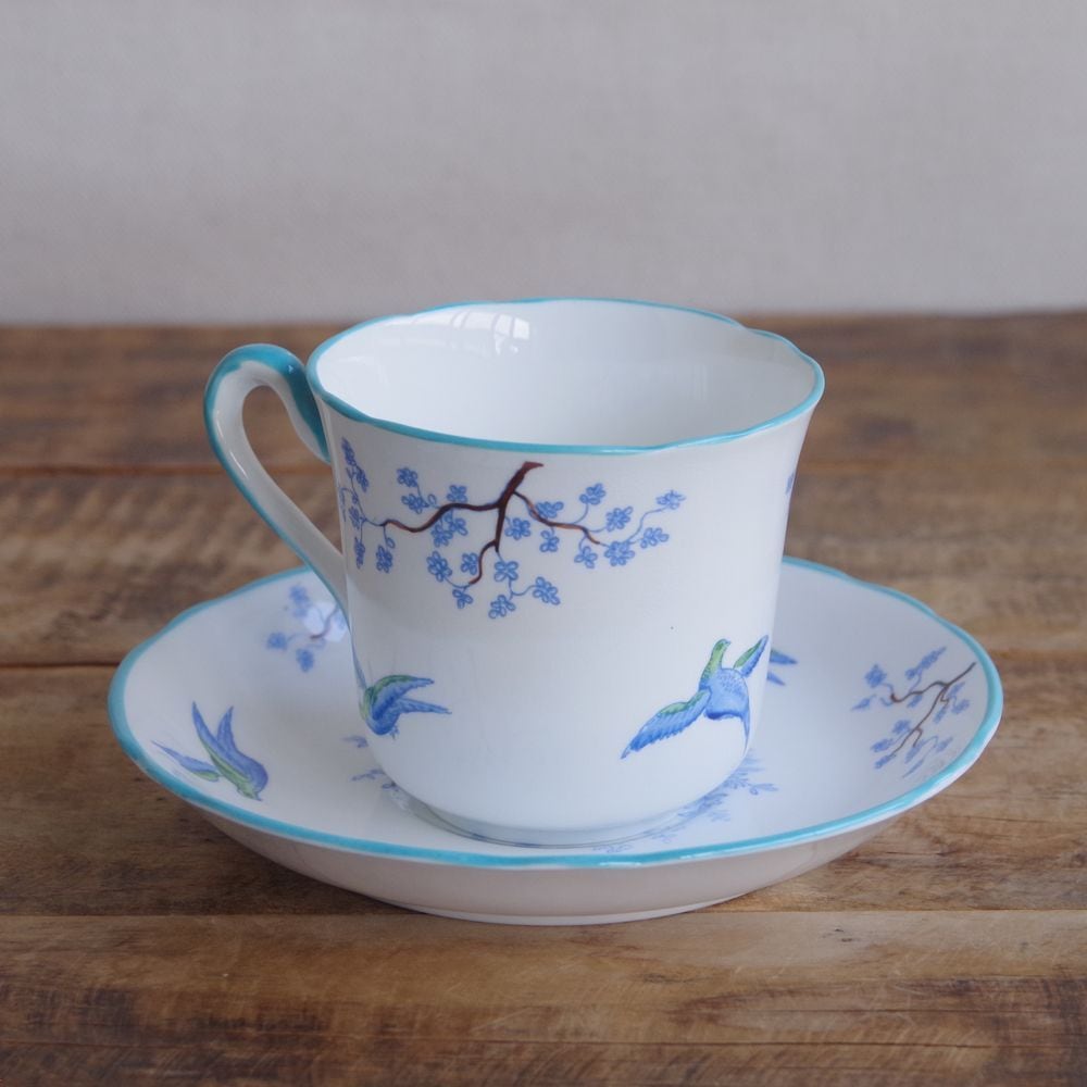 グローブナー ブルー 鳥 コーヒーカップ ソーサー Grosvenor #240927-1 イギリス ヴィンテージ アンティーク 食器 陶器 レトロ 雑貨 Ye Olde English Jackson&Gosling