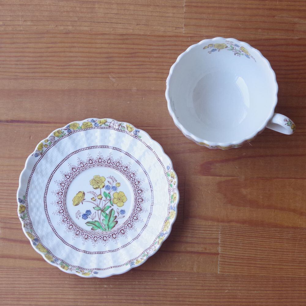 スポード バターカップ ティーカップ ソーサー Spode Buttercup ヴィンテージ食器 きんぽうげ 花柄 アンティーク 陶器 ウィッカー レリーフ Copeland #241006-5