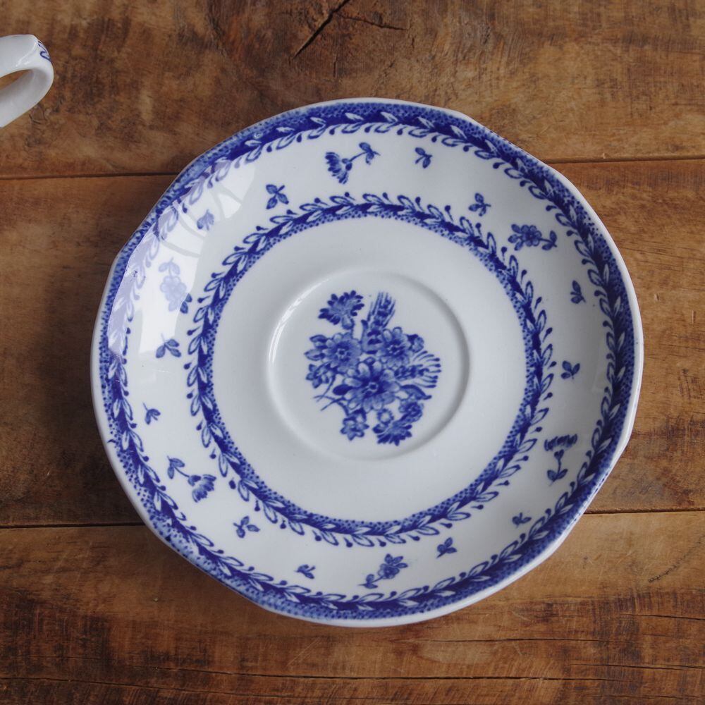 コバルトブルーの染付で、花や葉、麦穂のような絵柄が入っています。