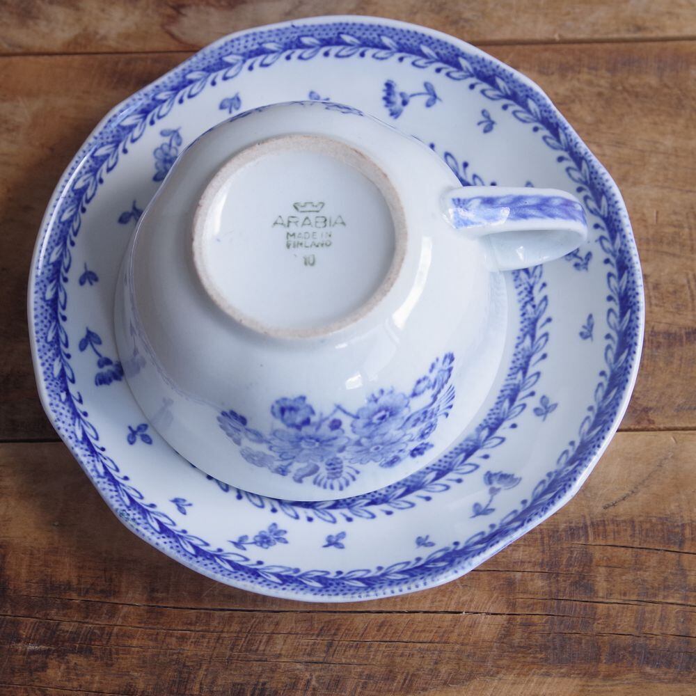 アラビア ARABIA フィンフラワー コバルトブルー 花柄 ティーカップ ソーサー フィンランド ヴィンテージ 食器 #241009-7 北欧 アンティーク 陶器 カップ&ソーサー Finn Flower