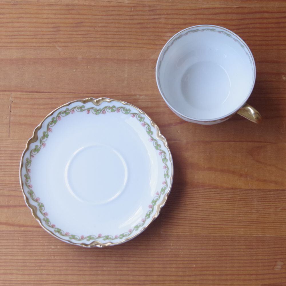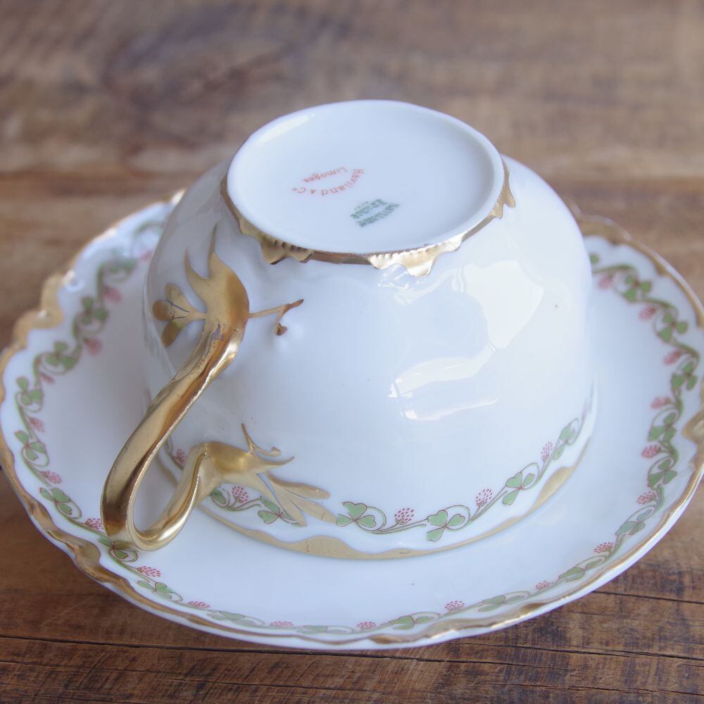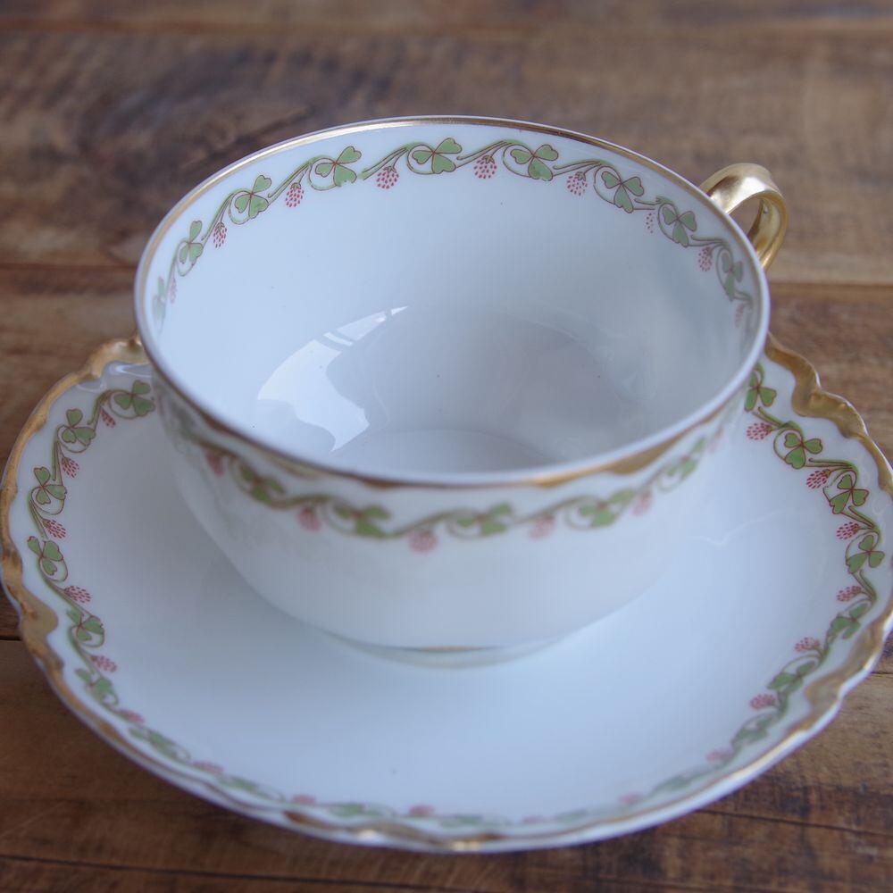 フランス アンティーク 食器 リモージュ アビランド クローバー柄 金彩 ティーカップ ソーサー #241010-1 Limoges Haviland France Clover Leaf マットゴールド