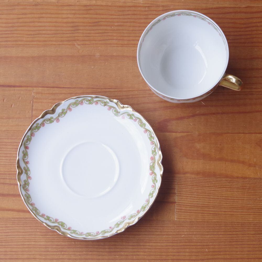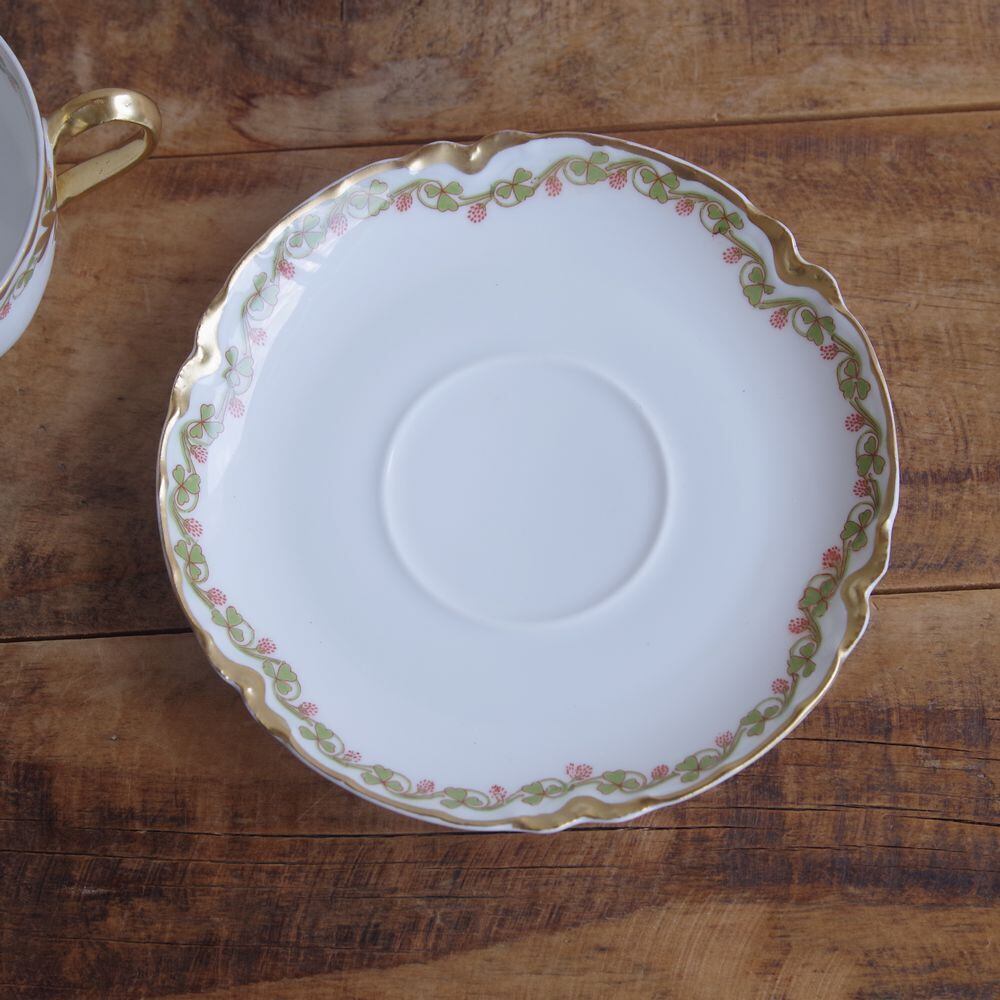 フランス アンティーク 食器 リモージュ 陶器 アビランド クローバー柄 金彩 ティーカップ ソーサー #241010-5 Limoges Haviland France Clover Leaf マットゴールド