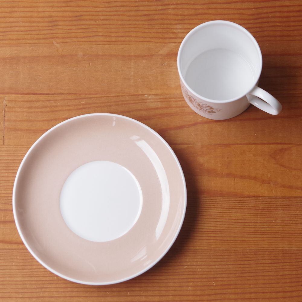 ソーサーは中央を残して、ピンクベージュに塗られており、