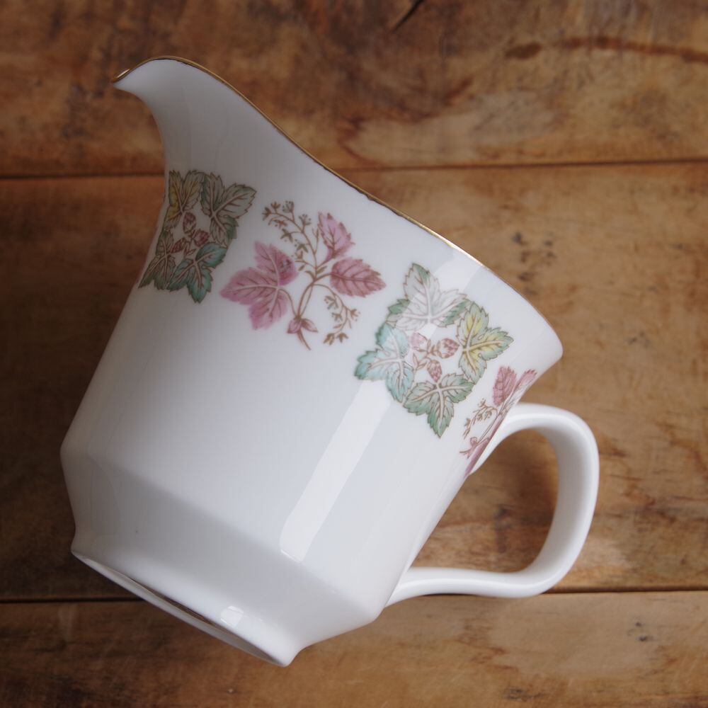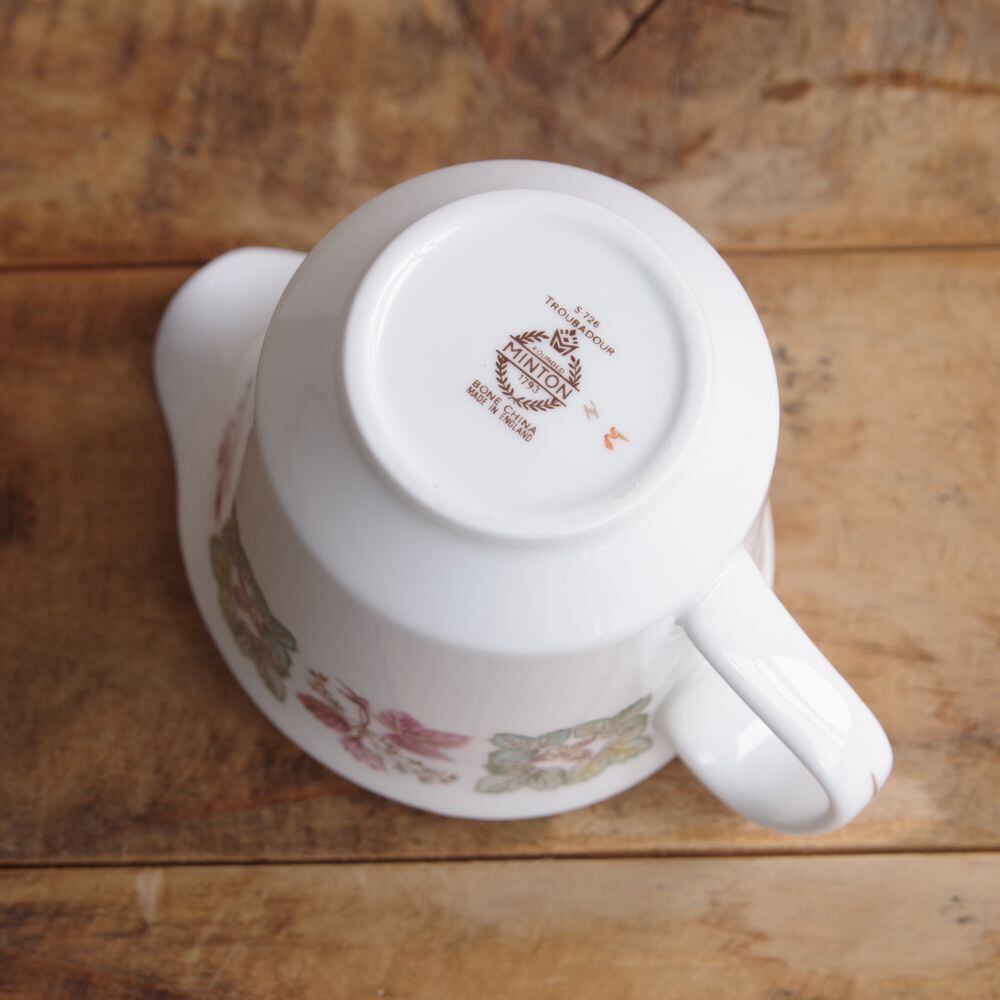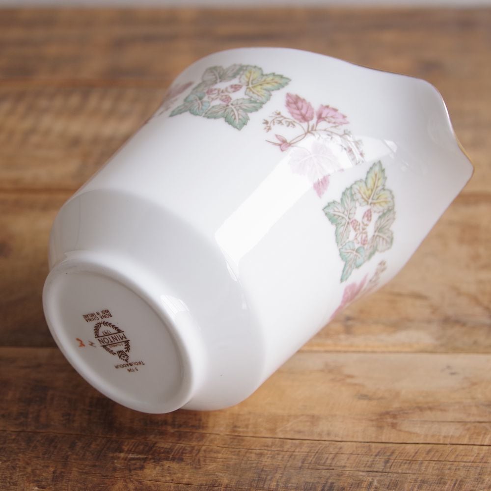 ミントン トルバドゥール クリーマー ミルク入れ ピッチャー ミルクポット Minton Troubadour いちご ボタニカル柄 イギリス ヴィンテージ 食器 陶器 #241024 ゴールド ふちどり レトロ 英国 茶器 片口