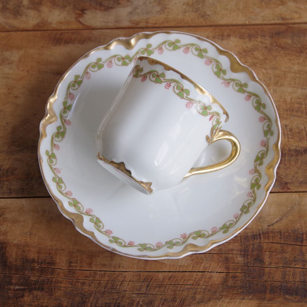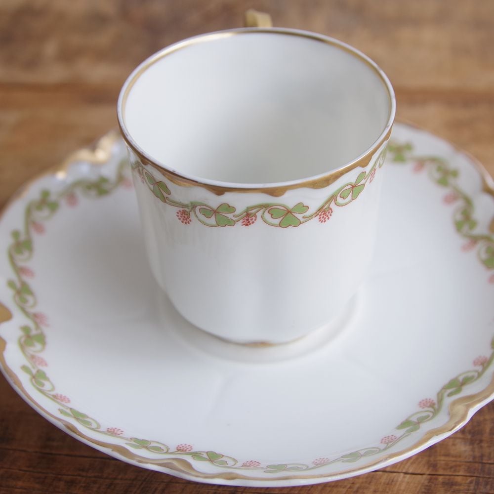 フランス アンティーク 食器 陶器 リモージュ アビランド クローバー柄 Clover Leaf デミタスカップ ソーサー エスプレッソカップ 小さめ #241025-3 Limoges Haviland France ゴージャス ゴールド