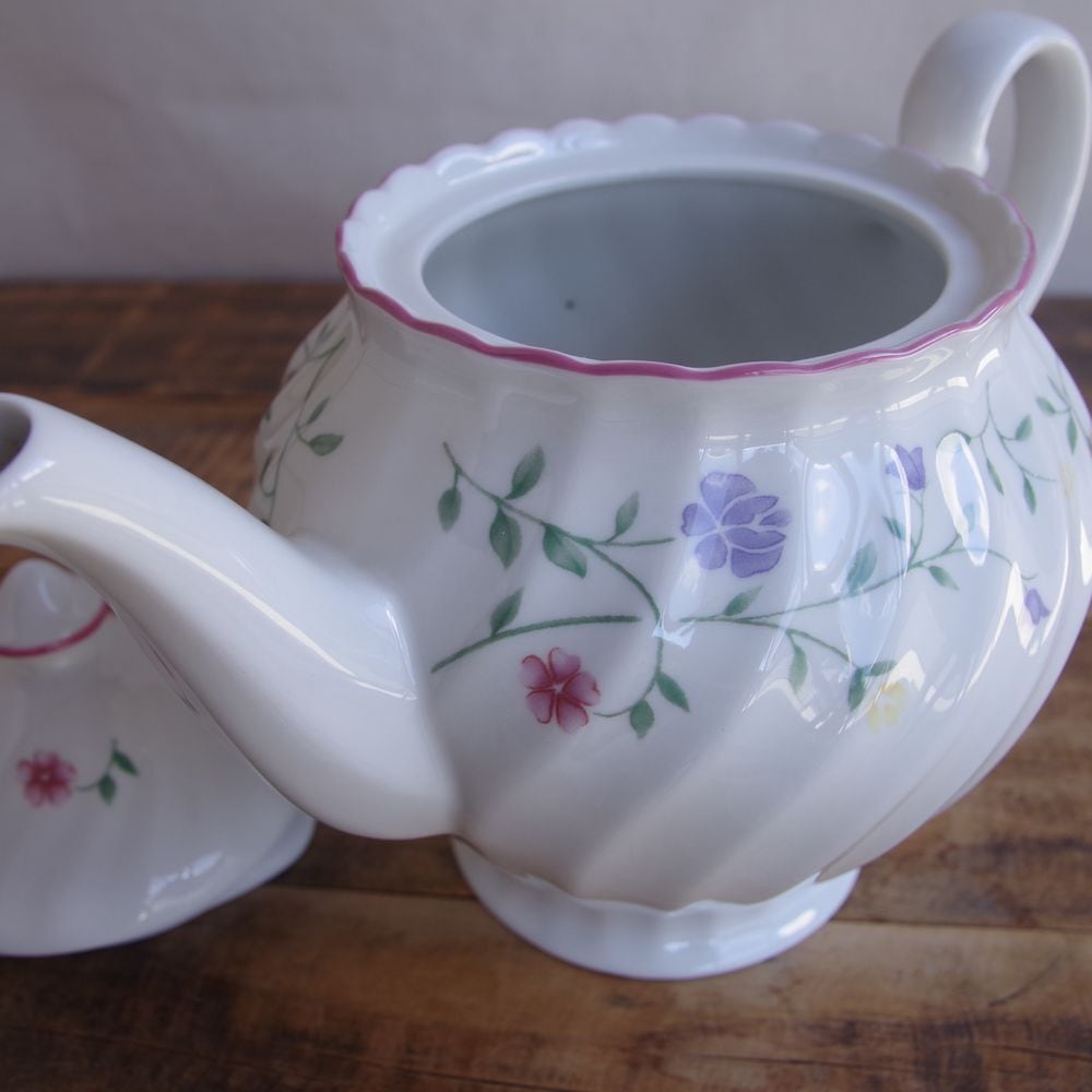 ジョンソンブラザーズ サマーチンツ ティーポット Johnson Brothers Summer Chintz #241106 イギリス ヴィンテージ食器 陶磁器 ピンク ふちどり 花柄 コーヒーポット 英国 雑貨 Tea Coffee Pot 茶器