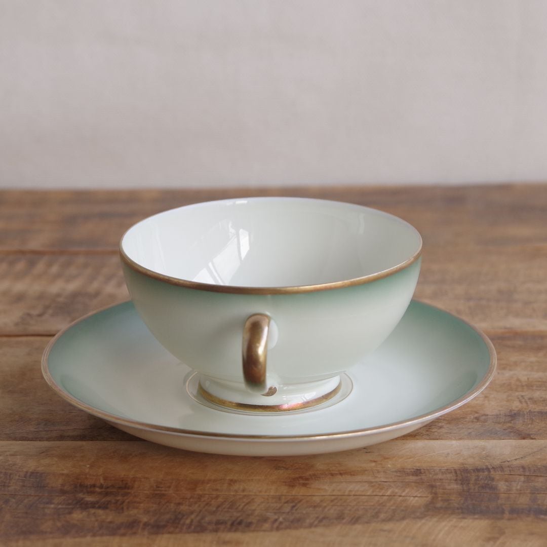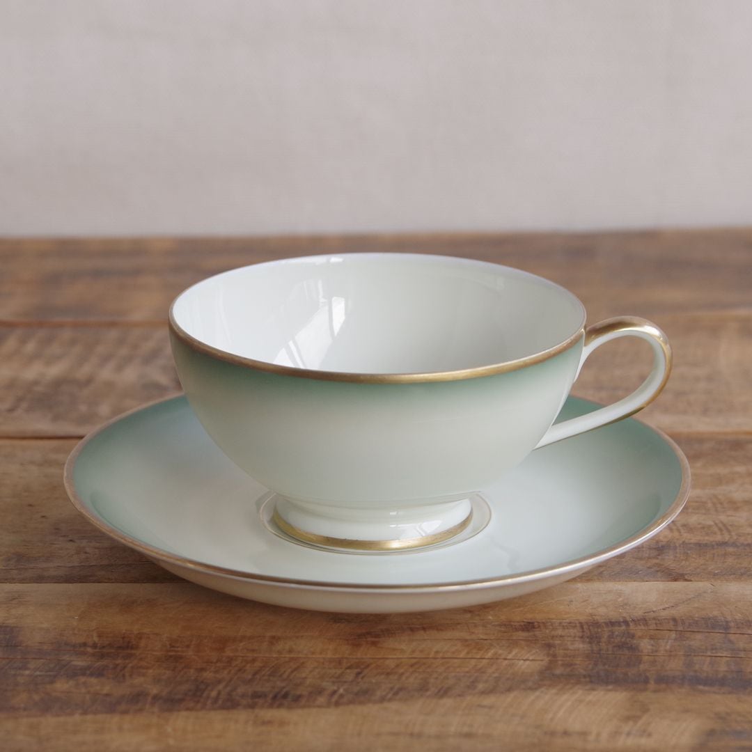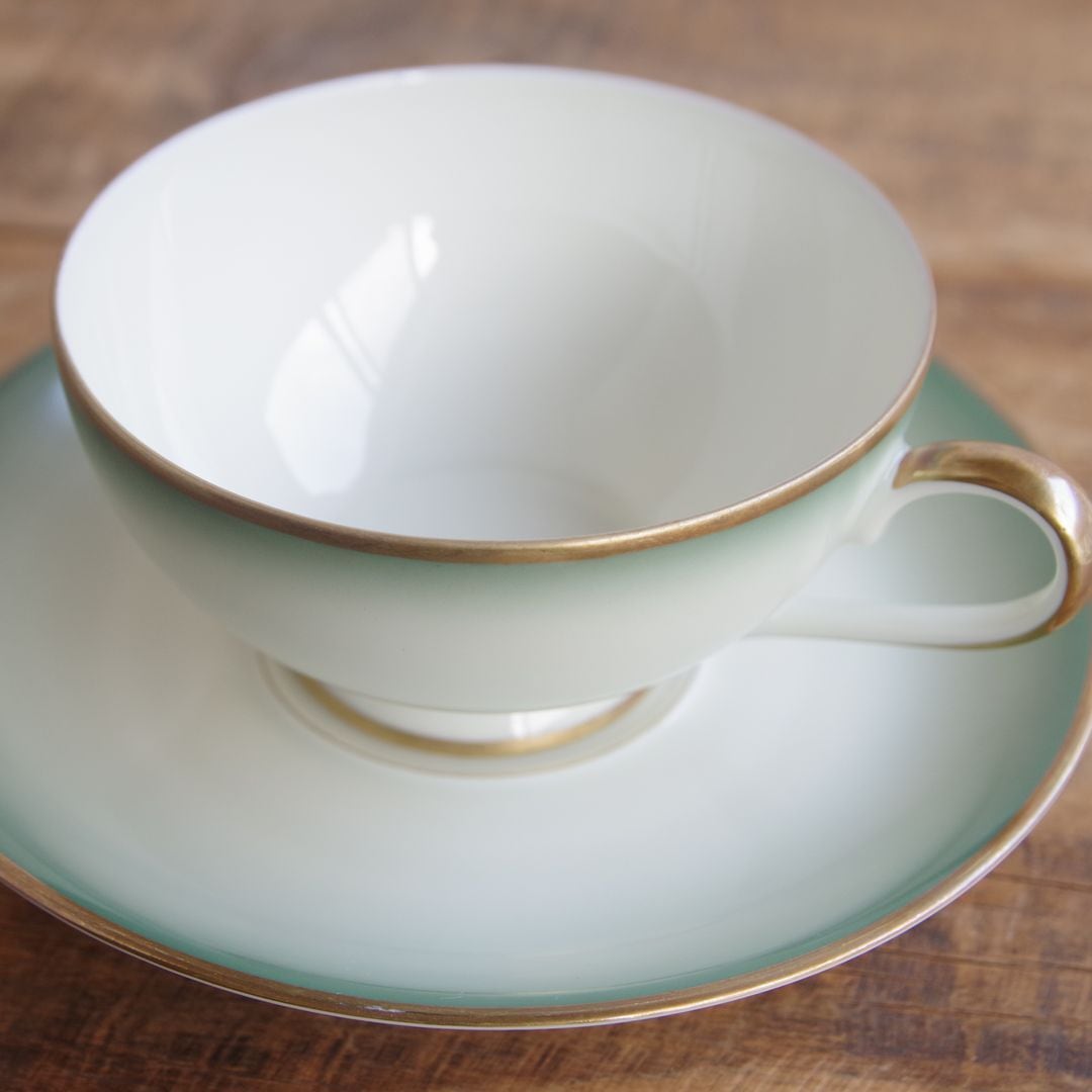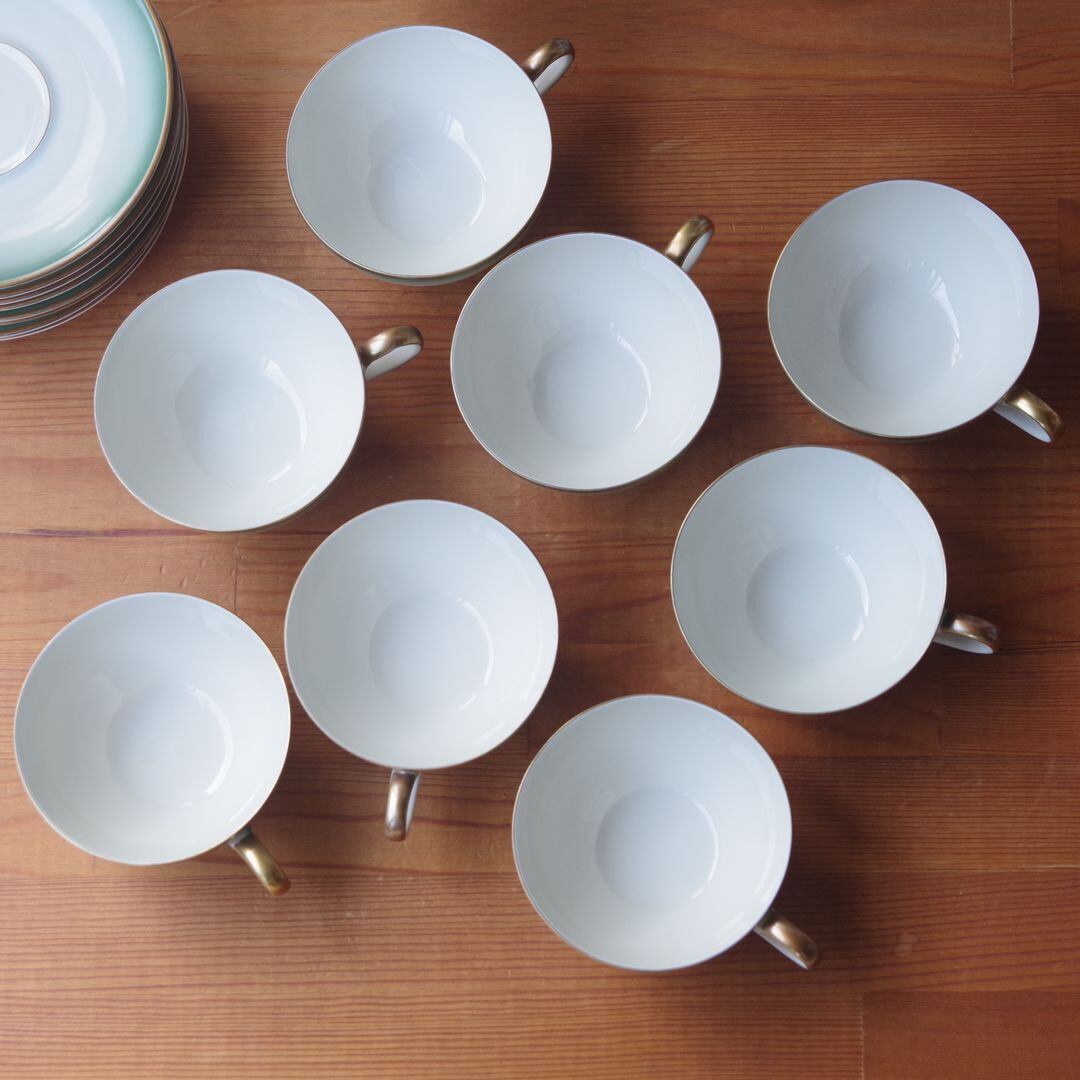 ローゼンタール アイボリー グリーン ゴールド ふちどり ティーカップ ソーサー ドイツ製 アンティーク食器 ヴィンテージ 陶器 #241120~1~8 昭和レトロ 象牙色 グラデーション 脚付き コーヒーカップ カップ&ソーサー デュオ Rosenthal Else