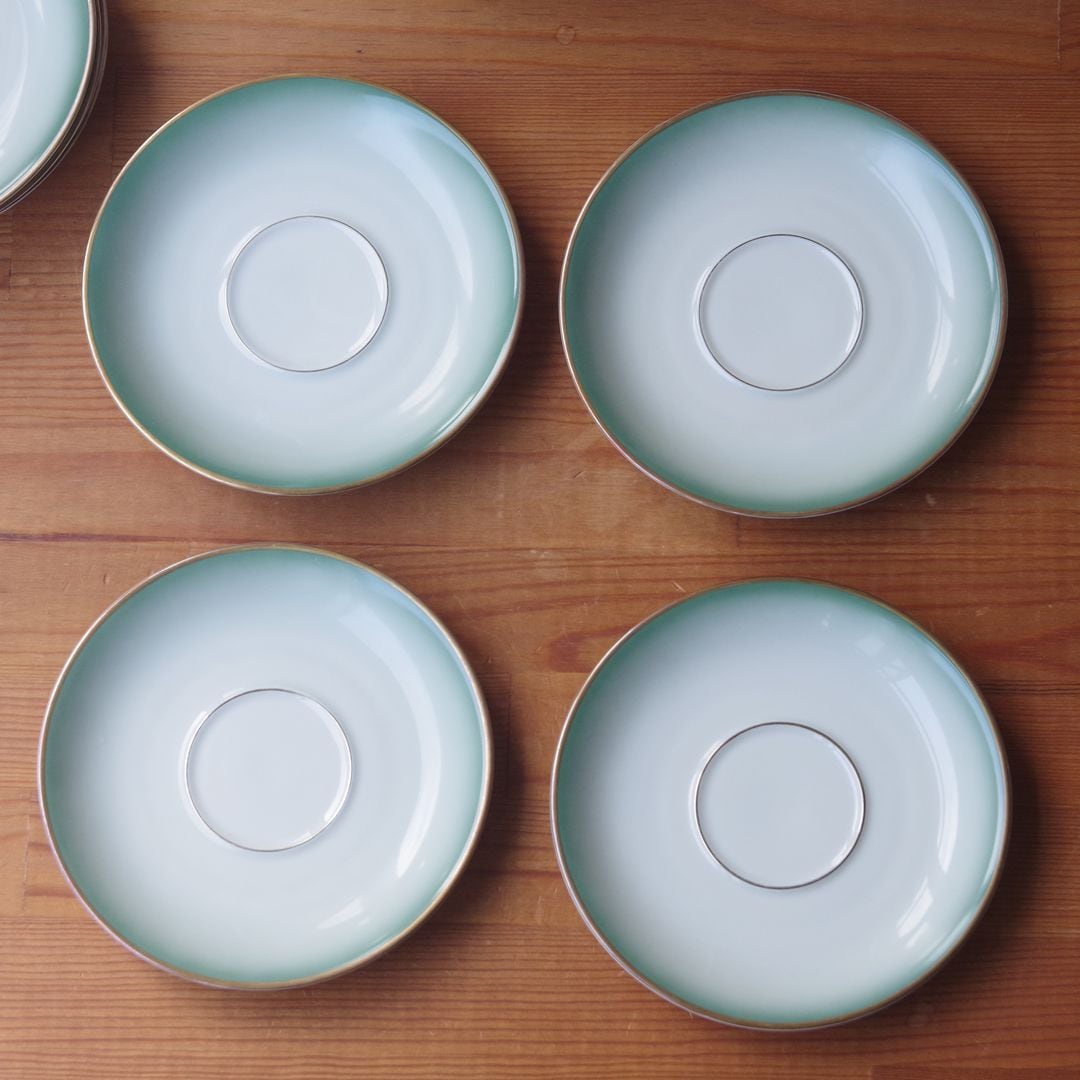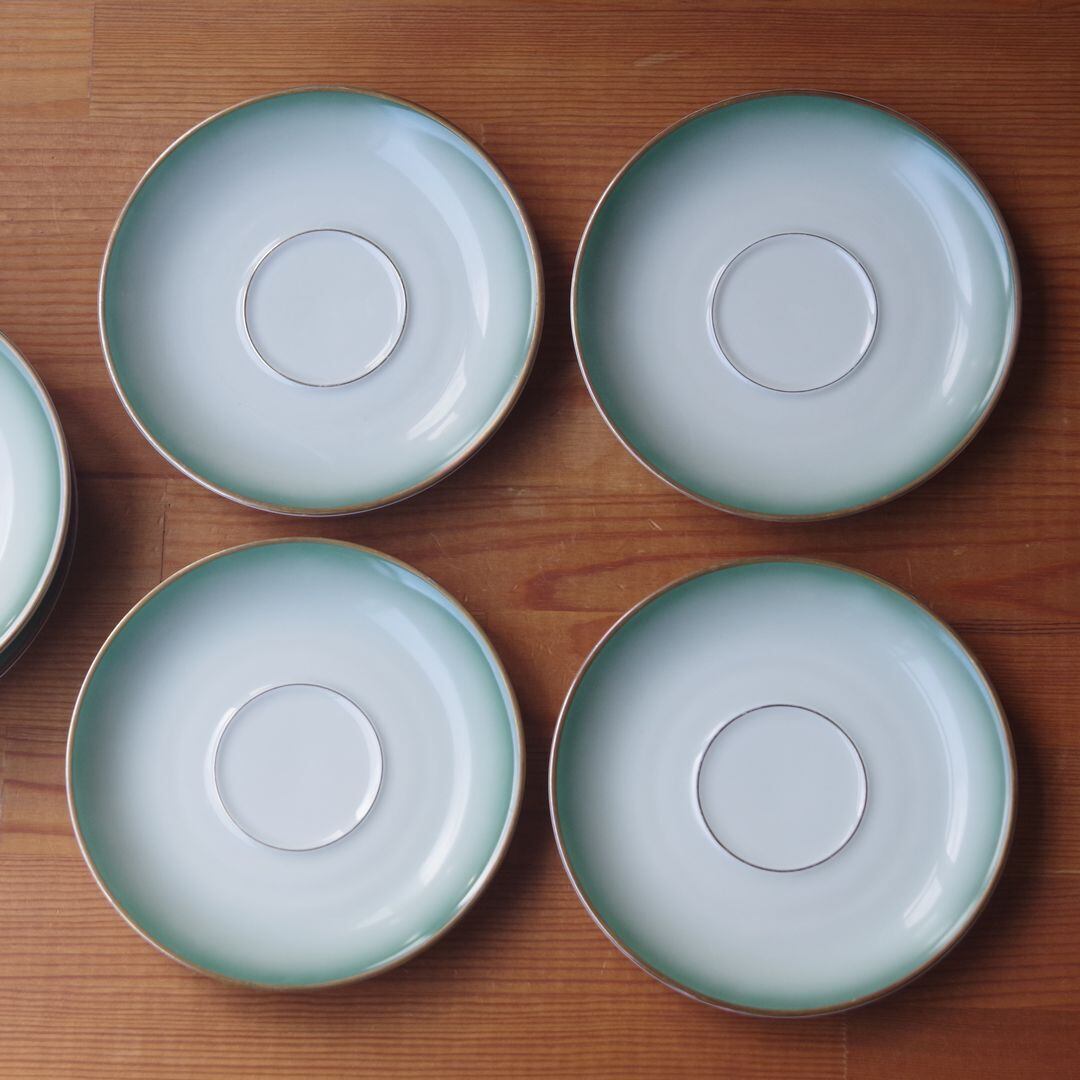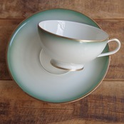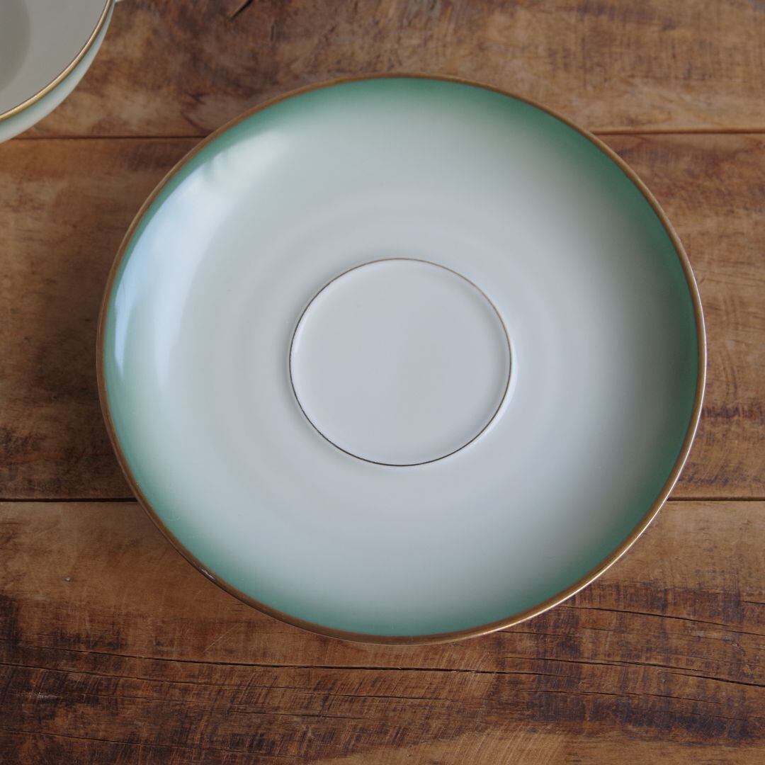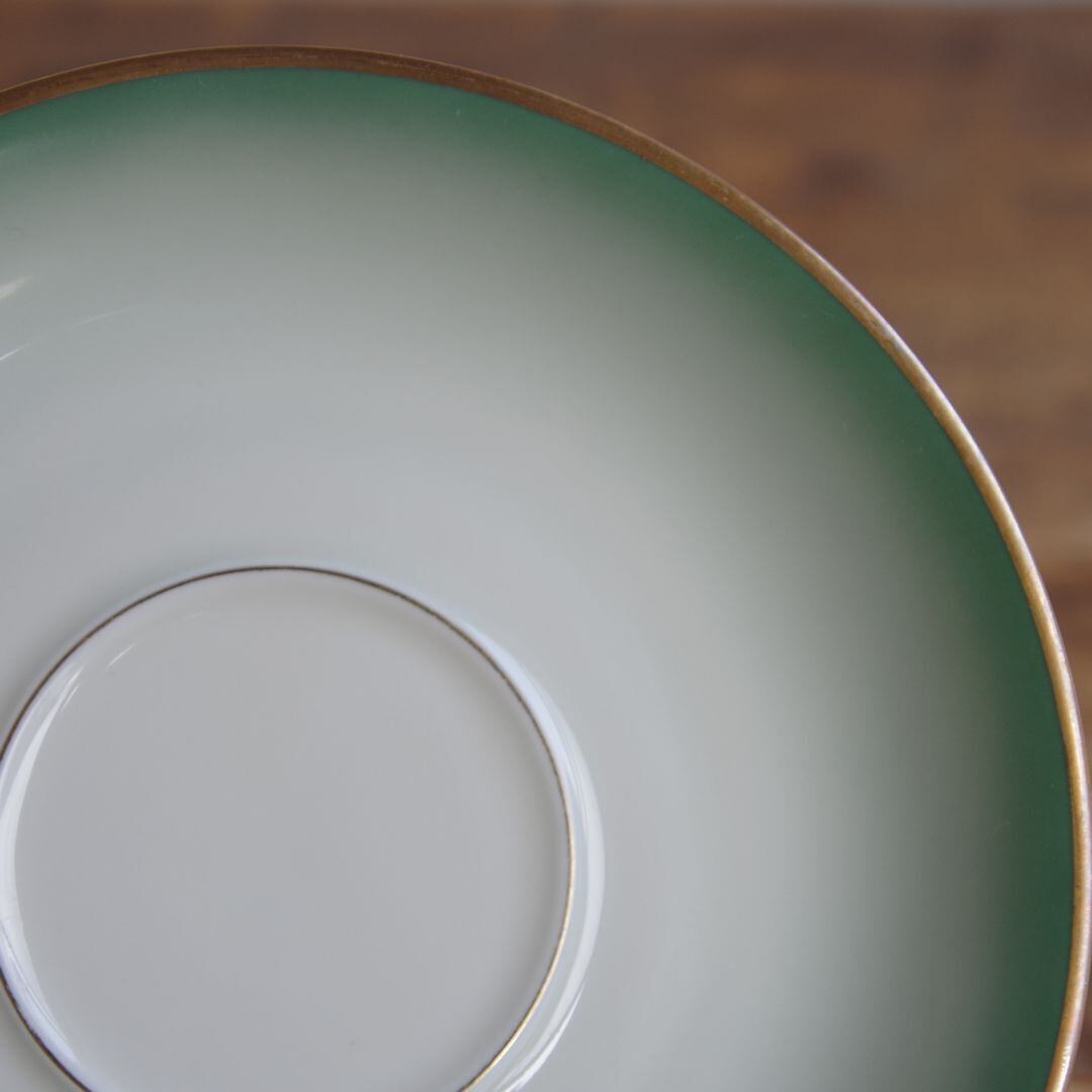 ローゼンタール アイボリー グリーン ゴールド ふちどり ティーカップ ソーサー ドイツ製 アンティーク食器 ヴィンテージ 陶器 #241120~1~8 昭和レトロ 象牙色 グラデーション 脚付き コーヒーカップ カップ&ソーサー デュオ Rosenthal Else