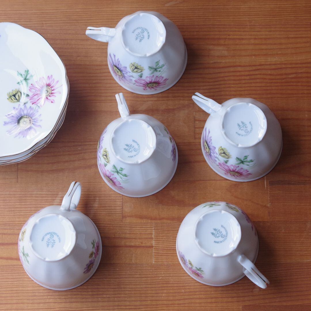 チェコスロバキア製 Haas & Czjzek H&C マーガレット 花柄 コーヒーカップ ソーサー 東欧 Czechoslovakia アンティーク 食器 陶器 ヴィンテージ #241120-1~5