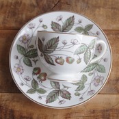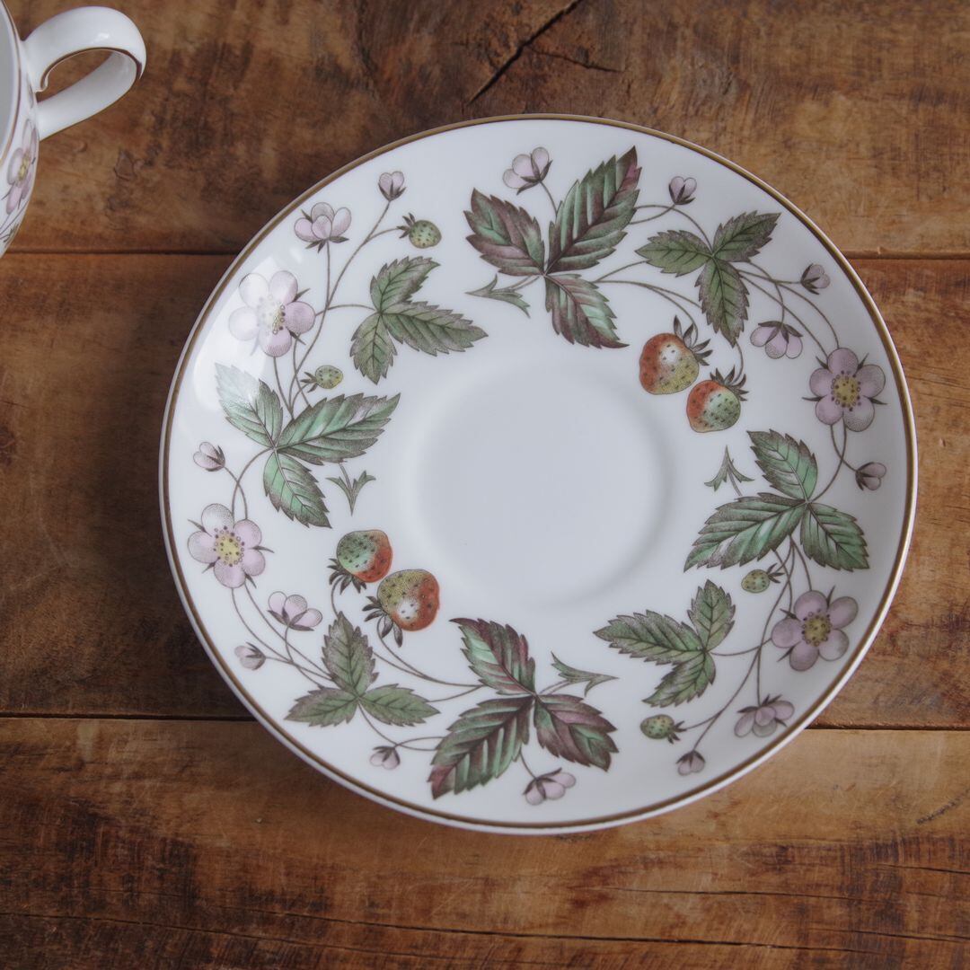 ウェッジウッド ストロベリーヒル いちご柄 コーヒーカップ ソーサー ヴィンテージ 食器 Strawberry Hill Wedgwood #241129-5 フルーツ柄 レトロ ゴールド ボタニカル カップ&ソーサー