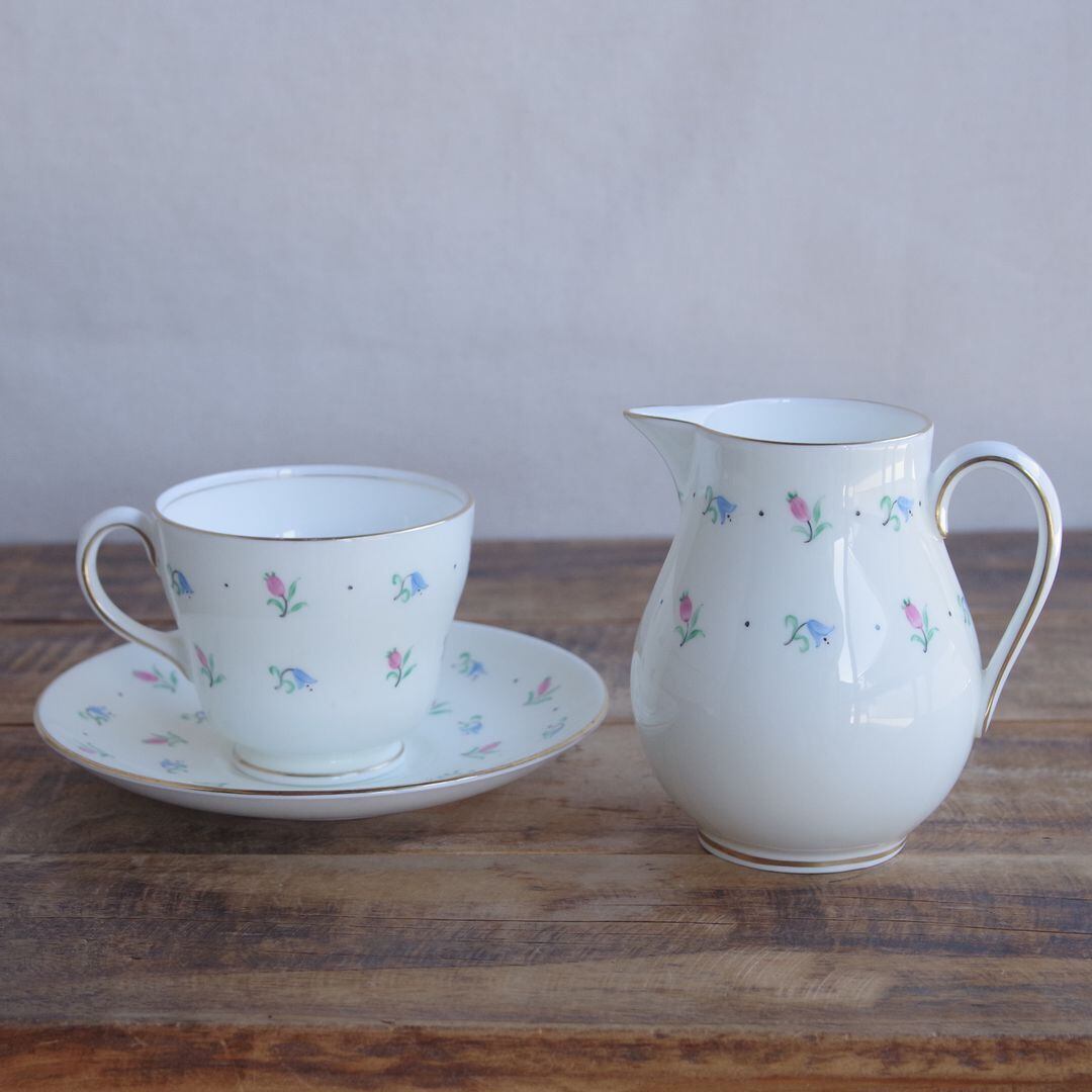 ウェッジウッド バッド&ベルズ ピンク ブルー 小花柄 クリーマー ミルク入れ ピッチャー ジャグ #241219 イギリス製 ヴィンテージ 陶磁器 Wedgwood Buds&Bells アンティーク 食器 レトロ かわいい