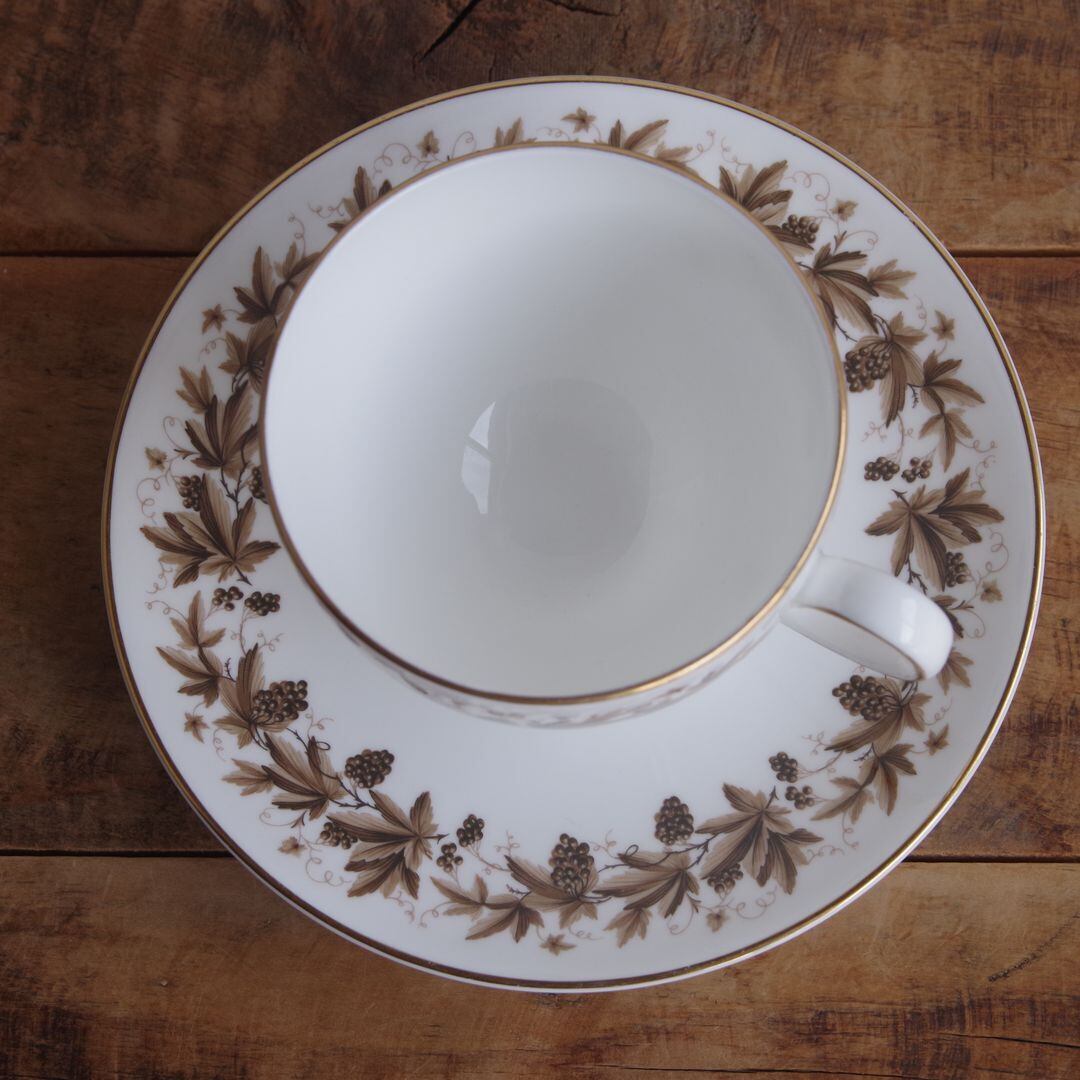 ウェッジウッド オータムヴァイン 葡萄 蔓 蔦 ボタニカル コーヒーカップ&ソーサー #250216-9~13 ヴィンテージ 食器 陶器 Wedgwood Autumn Vine ブラウン ぶどう ティーカップ デュオ