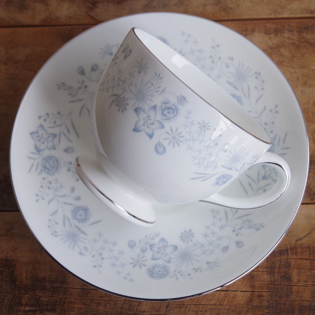 ウェッジウッド ベルフルール 水色 花柄 カップ&ソーサー #250216-1~3 ヴィンテージ 食器 陶器 Wedgwood Belle Fleur レトロ ボタニカル ティーカップ コーヒーカップ