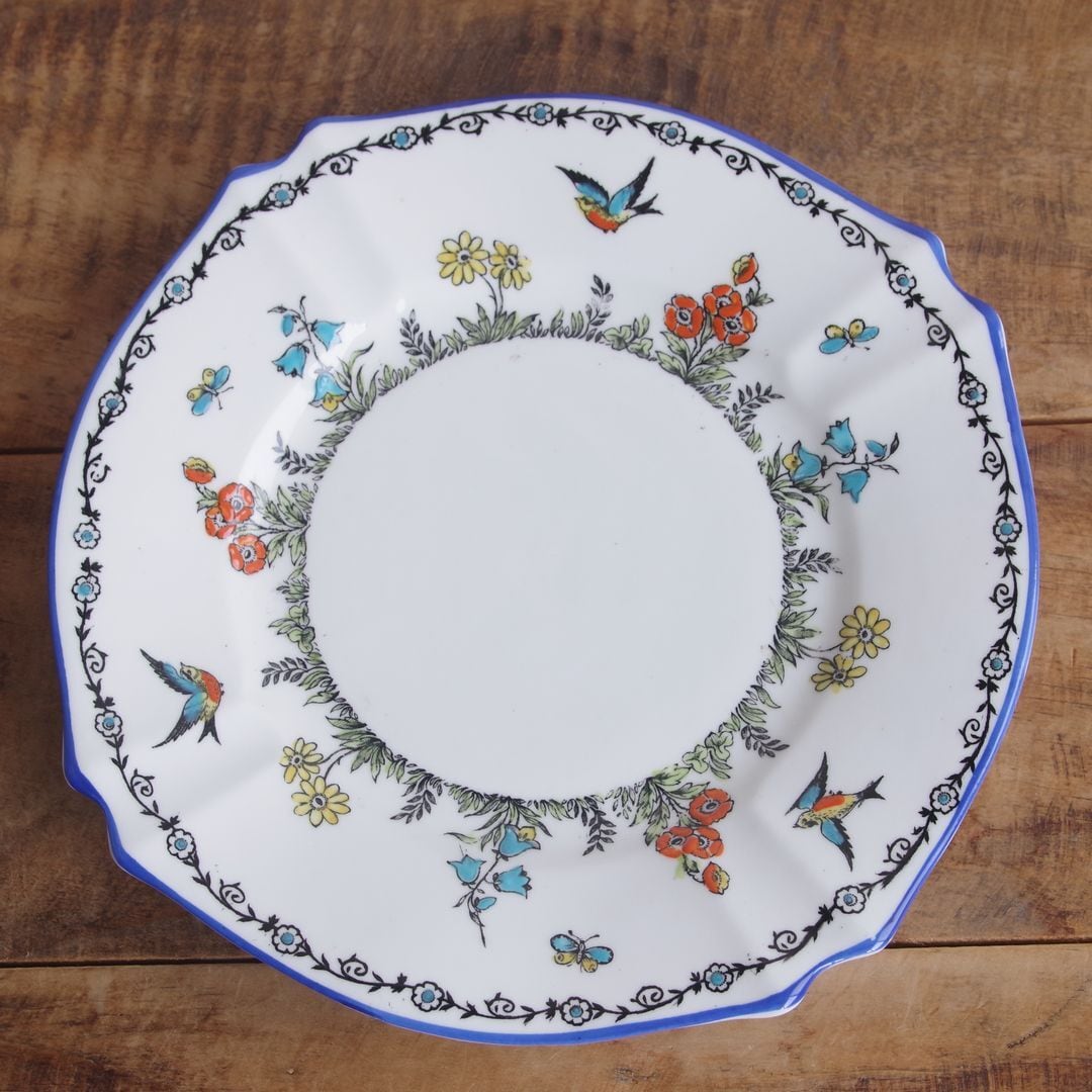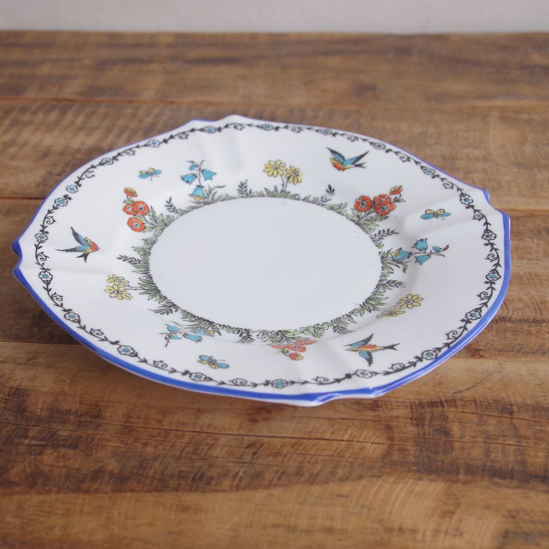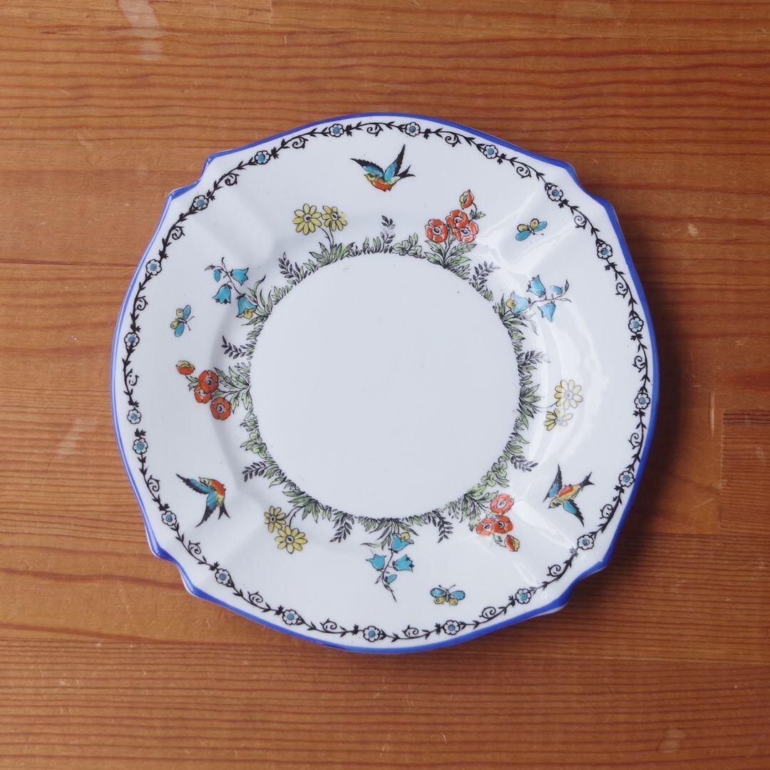 アンティーク食器 お皿 ケーキ皿 デザートプレート つばめ 花 蝶 18cm コーリングウッド Collingwood #250216-10 イギリス ヴィンテージ 陶器 レトロ 鳥