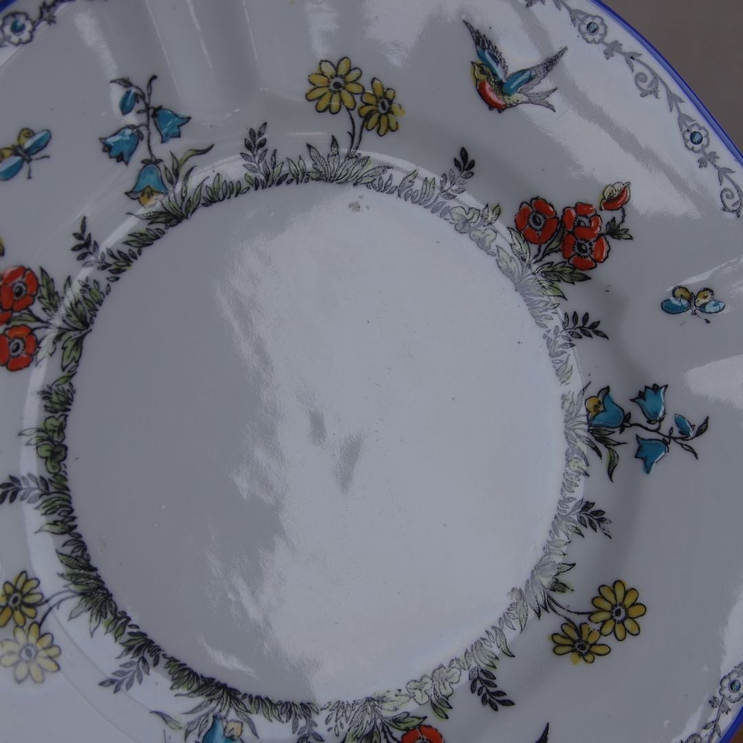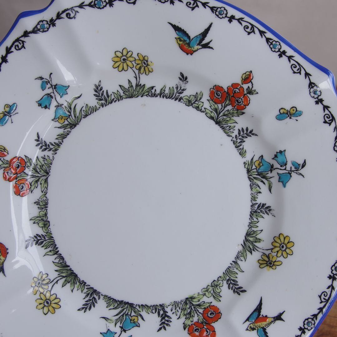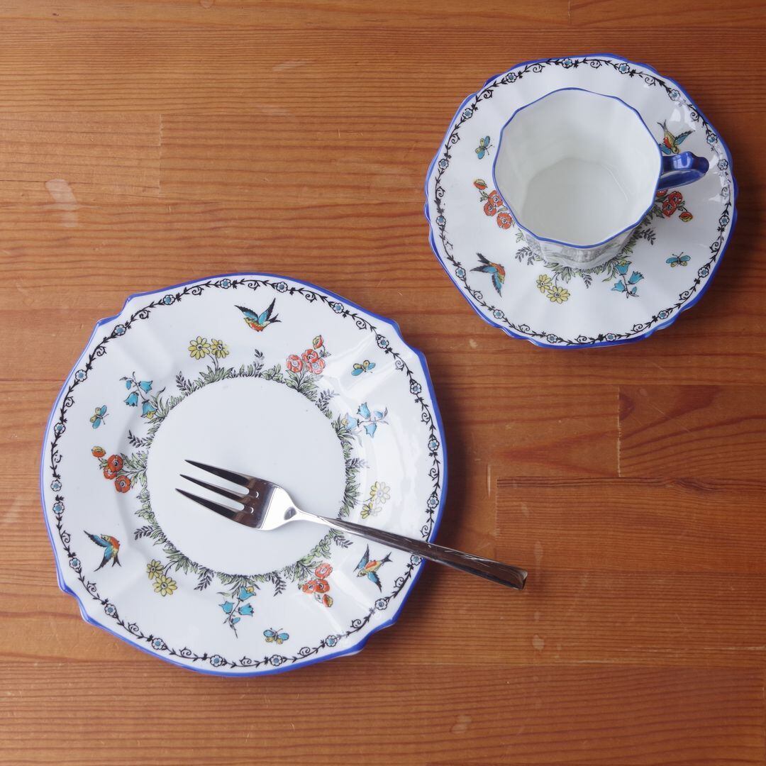 アンティーク食器 お皿 ケーキ皿 デザートプレート つばめ 花 蝶 18cm コーリングウッド Collingwood #250216-10 イギリス ヴィンテージ 陶器 レトロ 鳥
