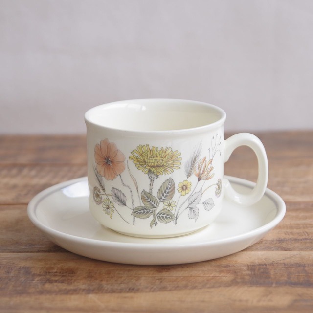 J&G Meakin ミーキン ハーブズ ボタニカル柄 コーヒーカップ&ソーサー たんぽぽ 野草 草花 #250503-11 イギリス ヴィンテージ食器 レトロ かわいい ティーカップ Herbs