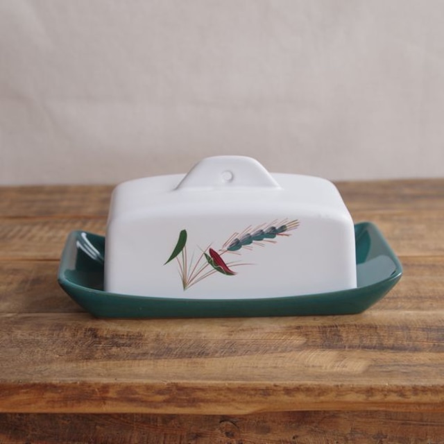 デンビー DENBY グリーンウィート 麦 バターケース Green Wheat ヴィンテージ 食器 陶器 手描き #240405 イギリス 陶器 レトロモダン 渋め