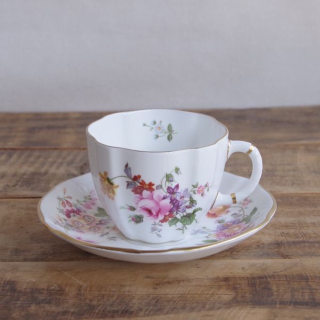ロイヤルクラウンダービー ポウジーズ コーヒーカップ ソーサー 花柄 ヴィンテージ食器 ブーケ #240322-3 ポージーズ イギリス アンティーク Royal Crown Derby Posies