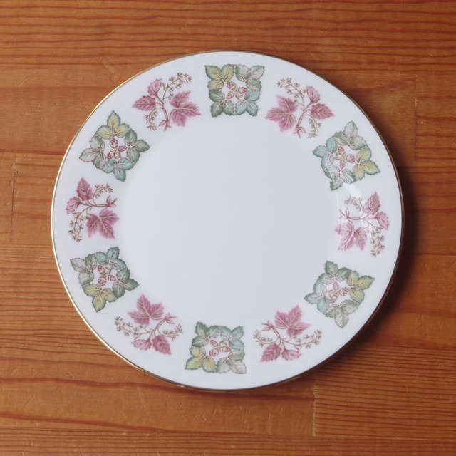 ミントン トルバドゥール デザートプレート ケーキ皿 取り皿 小さめ 16cm Minton Troubadour いちご ボタニカル柄 イギリス ヴィンテージ 食器 陶器 #241024-1~6 ゴールド ふちどり 丸皿 レトロ