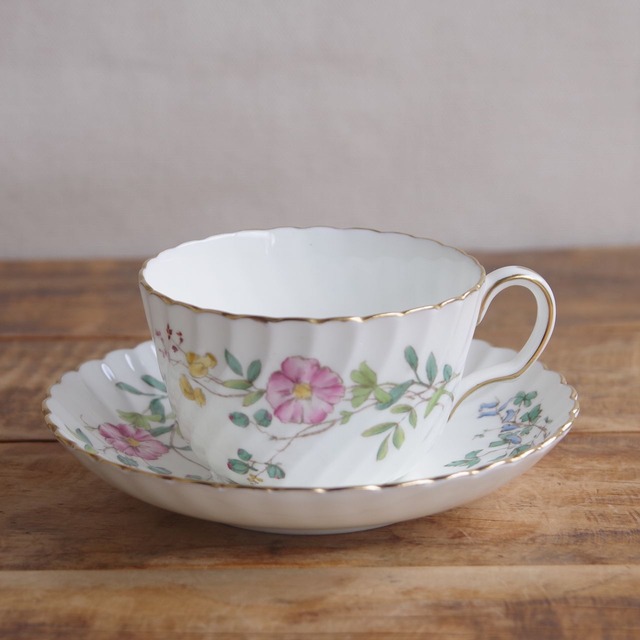 ミントン メドウ ティーカップ ソーサー Minton Meadow 花柄 ボタニカル柄 ヴィンテージ 食器 #251106-1~3 イギリス ヴィンテージ 食器 陶器 アンティーク カップ&ソーサー コーヒーカップ メドー 野の花