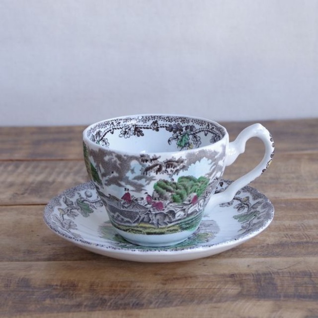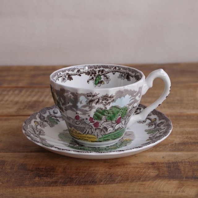イギリス ヴィンテージ 食器 馬 風景 どんぐり コーヒーカップ ソーサー レトロ 陶器 ミヨット カントリーライフ #230923-1 Myott Country Life 人物 ハンティング