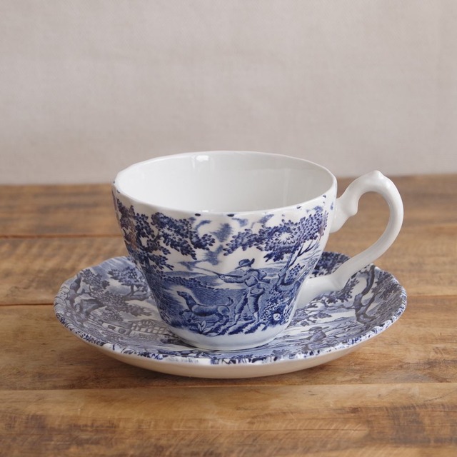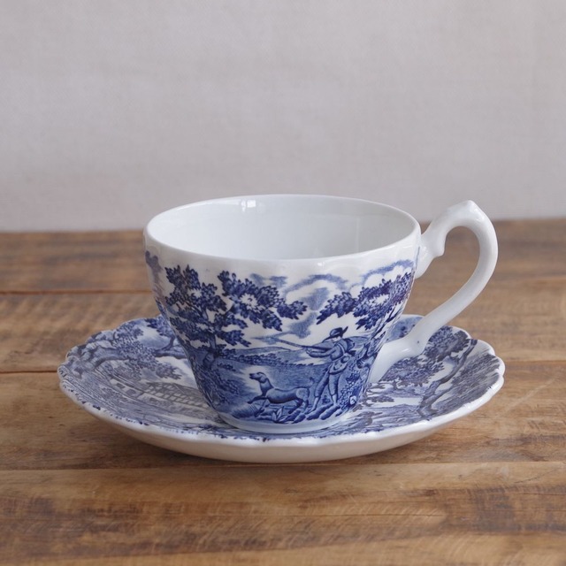 ミヨット ハンター コーヒーカップ ソーサー Myott The Hunter #240712-1 イギリス ビンテージ 食器 アンティーク 狩り 風景 猟犬 染付 コバルトブルー
