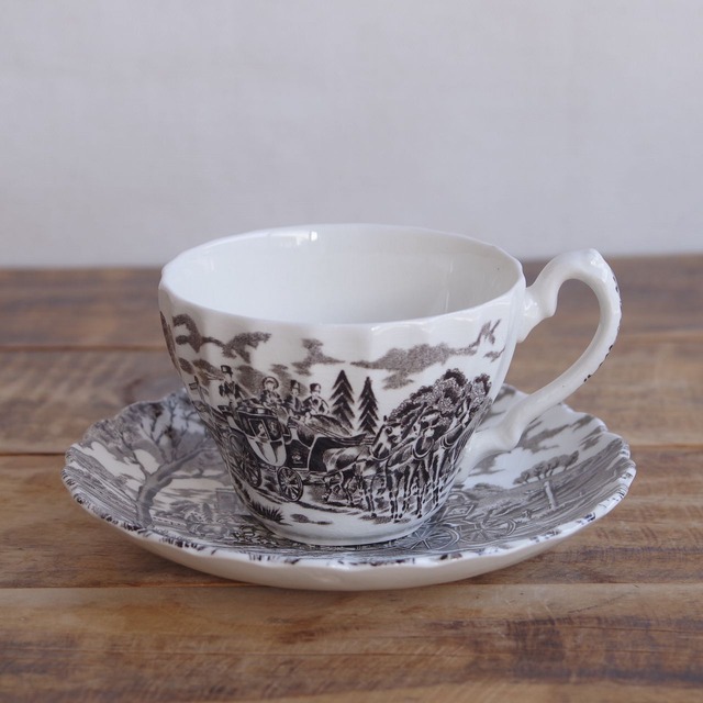 イギリス ヴィンテージ 食器 馬 風景 どんぐり コーヒーカップ ソーサー レトロ 陶器 ミヨット カントリーライフ #230923-4 Myott Country Life 人物