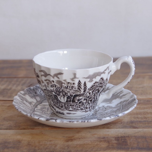 ミヨット ロイヤルメール ブラウン コーヒーカップ&ソーサー イギリス ヴィンテージ 食器 陶器 #250520-12 Myott Royal Mail 馬車 レトロ アンティーク ティーカップ