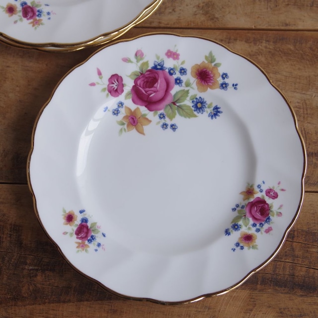ヴィンテージ食器 薔薇 花柄 ケーキ皿 デザートプレート 16cm Royal Victoria Summer Rose レトロ #240522-1~3 イギリス アンティーク ロイヤルビクトリア サマーローズ