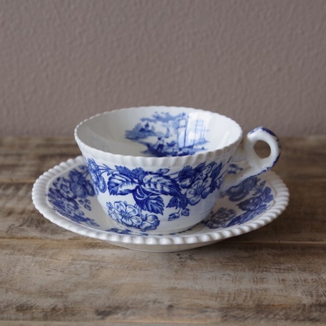 セーラム イングリッシュビレッジ ブルー コーヒーカップ ソーサー Salem English Village #210219-1 イギリス ビンテージ レトロ 食器 陶器 村 家 風景