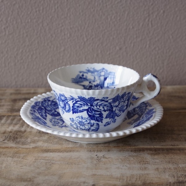 イギリス ヴィンテージ 食器 陶器 セーラム イングリッシュビレッジ ブルー コーヒーカップ ソーサー #210522-2 Salem English Village アンティーク レトロ 村 家 風景
