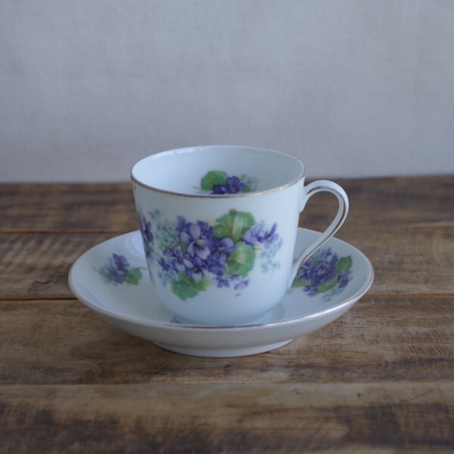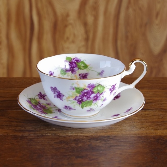 イギリス製ヴィンテージ食器 Victroia すみれ花柄 ティーカップ ソーサー #180327-1 アンティーク レトロ ビクトリア Bone China